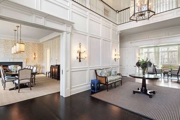 Welcome to 58 Wainscott Stone Road, a timeless Hamptons classic situated on a 5.4-acre property in Wainscott South. The 13,400 +/- square foot gated estate is surrounded by a 10-acre reserve with a natural pond, enhancing the home's bucolic setting. This home offers unparalleled privacy just minutes from the storied Georgica Pond and pristine Atlantic ocean beaches. As you enter the home, you're welcomed by the light-filled grand foyer with its double height ceilings. The main level features a living room with a wood-burning fireplace directly off the kitchen, an elegant dining room, library, formal living room and sunroom each with its own gas lit fireplaces. The chef's kitchen, designed by Christopher Peacock, is equipped with top-of-the-line appliances, a butler's pantry, and a wet bar, ideal for culinary enthusiasts. This level is complete with a junior primary suite, a versatile room with full bathroom perfect for a home office, laundry and mud room. 58 Wainscott Stone is designed for both effortless entertaining and everyday comfort in mind which seamlessly opens to an expansive bluestone patio, with a fully equipped outdoor kitchen. Upstairs, the primary suite serves as a serene retreat with the sitting room and bedroom opening up to two separate terraces, dual walk-in closets, and a spa-like en suite bath including a double-sink vanity and soaking tub. Six additional en suite bedrooms provide ample space for family and guests. A convenient laundry room and elevator servicing all three levels complete the second floor. The finished lower level features a walk-in wine cellar, gym with steam shower and sauna, a screening room, and spacious recreation areas complete with a half bath. Two additional rooms and a full bath on the lower level offers more flexible space. The meticulously landscaped grounds with expansive lawns are ideal for both relaxation and entertainment, creating an unparalleled outdoor living experience. Bluestone patios surround a 60' x 20' heated gunite pool with spa perfect for lounging, dining, and soaking in the beautiful surroundings. The 545 +/- square foot craftsman studio adds another level to this unique property with its inviting lounge area, full bath, laundry, kitchenette, and outdoor shower. A sunken hard court tennis, half basketball court, custom treehouse, and attached 3-car garage complete this offering. Positioned south of the highway, this estate provides access to beloved farm stands and the coveted Beach Lane and Town Line Beach. Experience luxury living at this Wainscott South retreat, where every detail has been thoughtfully crafted.