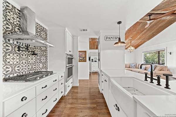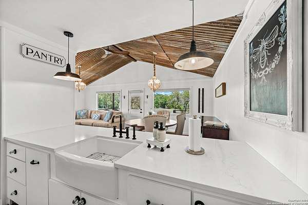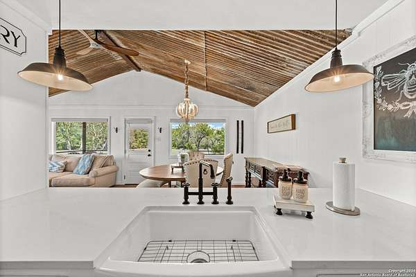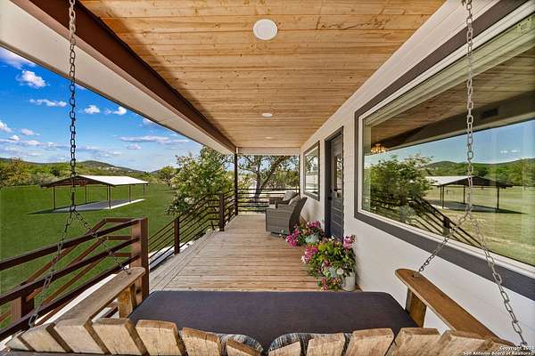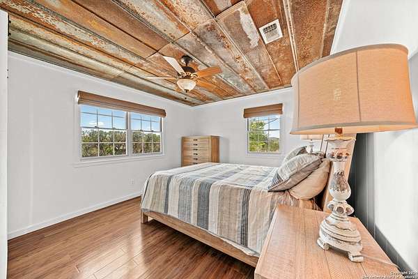 Discover the perfect blend of modern luxury and rustic charm in this beautifully renovated low-country style bungalow on the FRIO RIVER! This home features 2 bedrooms and 1 bath, plus a separate 1 bed/1 bath guest suite, offering added flexibility and convenience. The property boasts high-end finishes, fixtures, and appliances throughout. Modern upgrades include a standing seam metal roof, new foam insulation, and Pex plumbing for optimal energy efficiency. Set on a meticulously maintained 2.4-acre lot, the property provides ample space for outdoor activities. With over 210 feet of Frio River frontage, you can enjoy a serene waterfront lifestyle and a range of water activities. An outdoor cabana is perfect for al fresco dining and entertaining. Although the property is restricted, there is no HOA membership required, giving you both privacy and the freedom to fully enjoy your space.