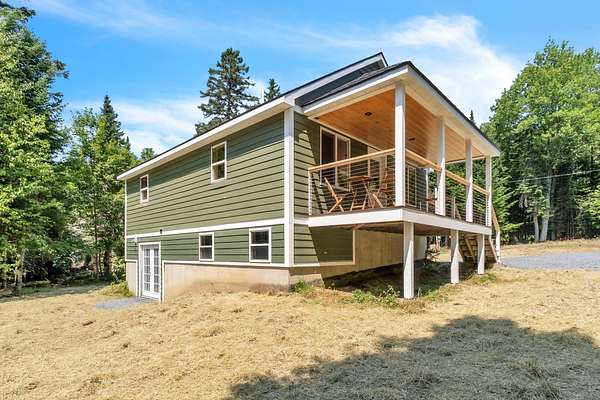 Tucked away on a private, wooded 2.2-acre lot, this recently finished 2-bedroom home with bonus loft offers the perfect blend of seclusion and convenience-just 1 mile from Rangeley Lakes School and the heart of town. Whether you're an outdoor enthusiast or looking for a peaceful getaway, this property delivers. Enjoy direct access to the snowmobile trail right from your backyard or head just minutes down the road to Saddleback Mountain for world class skiing. Relax on the covered porch under recessed lighting, or step into your full walk-out basement already plumbed for a second bath and ready for your finishing touch. The septic is designed for 4 bedrooms, allowing potential for an additional 2-bedroom accessory dwelling unit (ADU). Whether you're expanding, hosting, or investing, the options are wide open. Don't miss your chance to own a slice of Rangeley with privacy, potential, and year-round adventure.