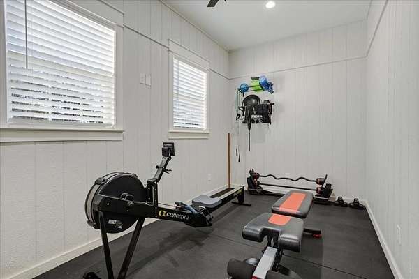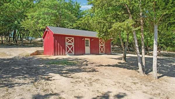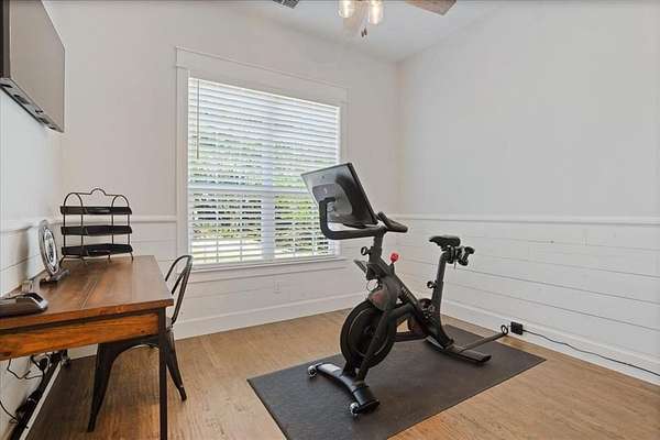 Secondary bedrooms share a Jack-and-Jill bath, and the exercise room offers flexibility for a home gym, studio, or office. Outside, the 23x14 cedar back porch overlooks a peaceful, wooded backyard that serves as your private sanctuary. Beyond the home, a barn with a fenced pristine pasture is home to a horse and donkey, adding to the property's charm and rural appeal.