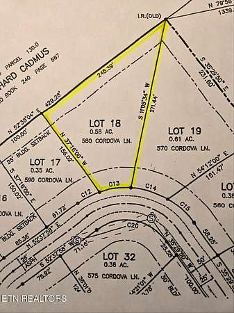Magnificent Mountain View Lot with Year-Round Unobstructed Views of the Smoky Mountains. This residential building lot offers breathtaking panoramic views of the entire Smoky Mountain range from Sevierville to Tellico Plains. Lots with these Smoky Mountain views are extremely rare. This lot is 0.58 Acres. The adjacent lot (0.35 ac) is also available for purchase. Cordova Subdivision has all underground utilities, including sewer, electricity, water, natural gas, and two fiber optic cable providers at the street. This excellent location is only 1.5 miles from Interstate 75 and 10 minutes to Turkey Creek shopping. McGhee Tyson Airport is 25 minutes away. This is not a drive by lot. Please go to the top of the lot. The property levels out with a great spot for a house with an incredible Smoky Mountain view. Four TVA lakes are located within 4 miles of this property (Ft. Loudoun, Tellico, Watts Bar, and Melton Hill). Lenoir City is known as 'The Lakeway to the Smokies'. There are NO HOA fees and NO CITY TAXES. Bring your vision and get ready to build your dream home today!