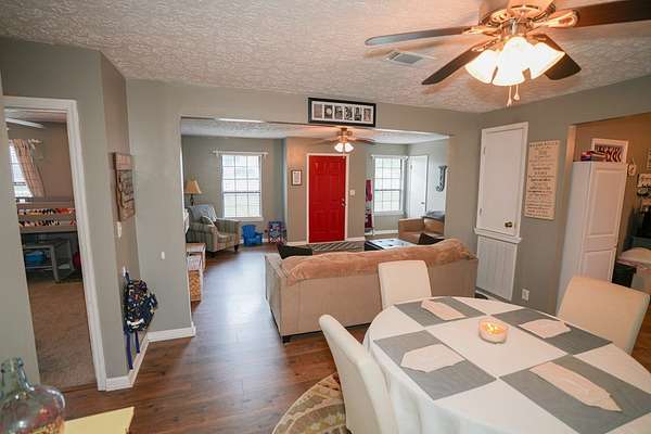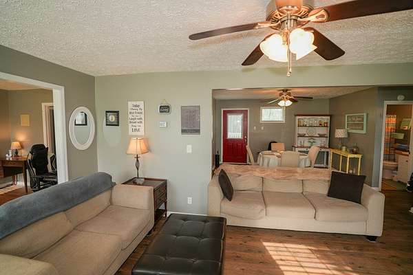 Welcome home to this beautifully updated 3 bedroom, 2 bathroom property nestled on 3.5 private acres!! A Small Pond also sits on this unique property.!! This move-in ready home features new flooring installed in 2023, along with a new roof and new decking installed in 2025. Inside you will find a fantastic layout with appliances remaining including Refrigerator, dishwasher, Stove/oven, and the washer & dryer. Storage space is also covered with a 12x30 storage building with electrical . If you looking for a quiet, desirable area with space to stretch out then look no further this house checks all the boxes!! Come enjoy some country living in Mt Vernon!!