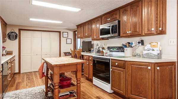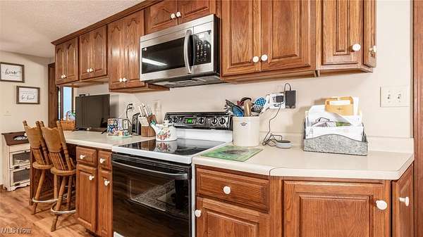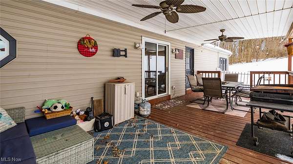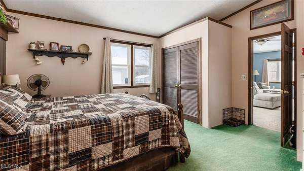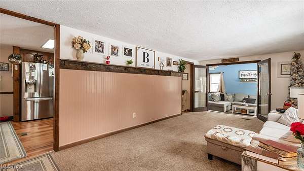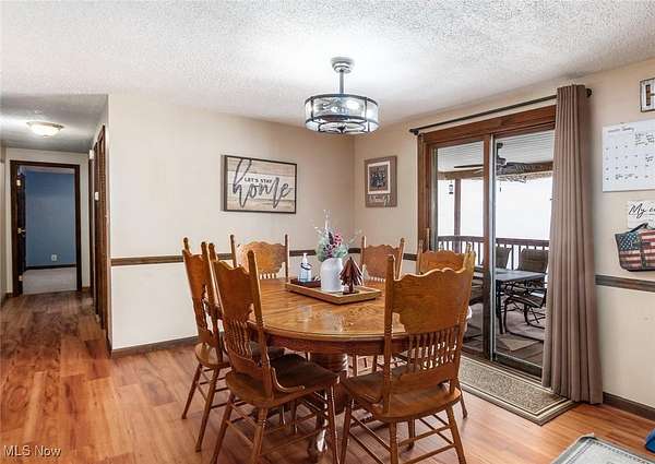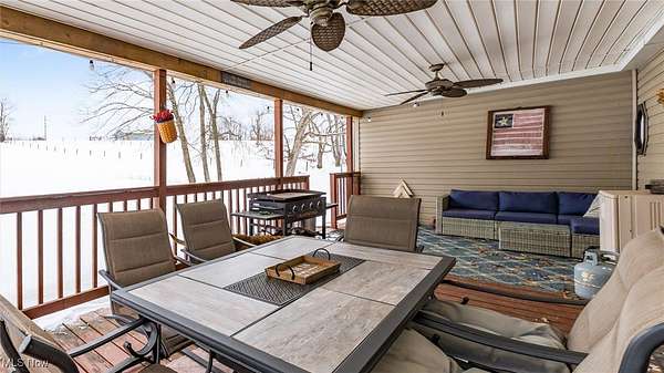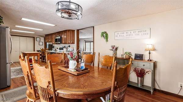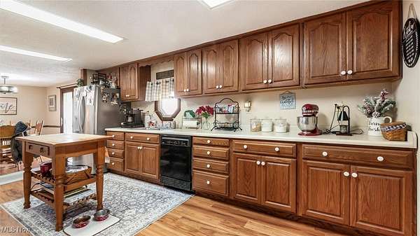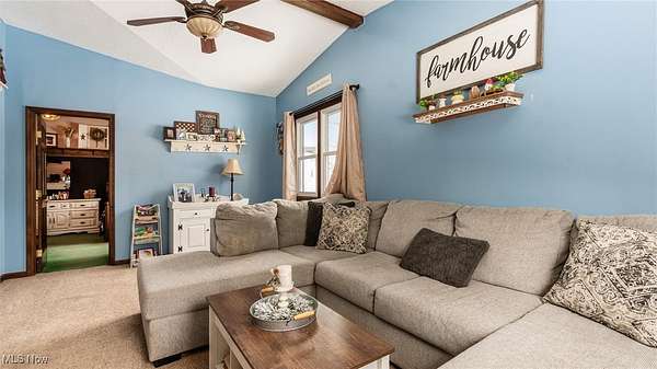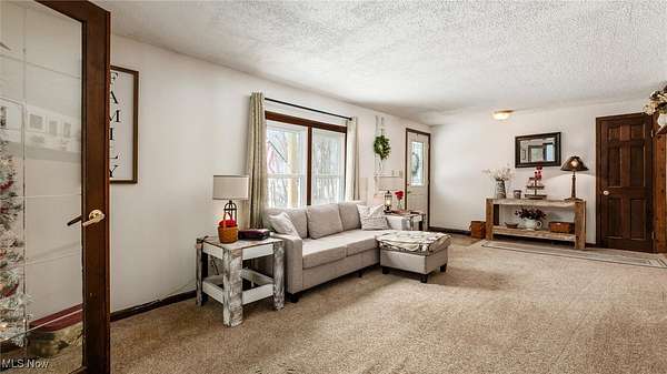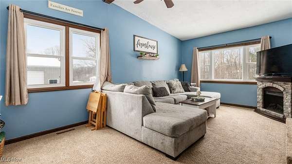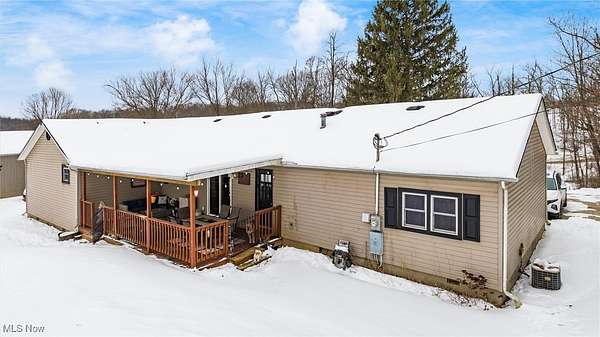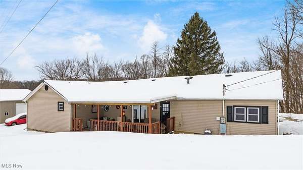 Situated on 5 acres, this 4-bedroom, 3-bath home offers generous living space with functional updates throughout. A newer addition includes a family room, primary bedroom, and full bathroom, providing added space and flexibility. Updates include a new roof with 30-year dimensional shingles, updated flooring in the kitchen, dining area, hallway, and bath, new bathroom vanity, windows, a new well system, and an updated hot water heater. A front porch and spacious covered back porch provide comfortable outdoor living space, with the back porch featuring two ceiling fans and a TV hookup. Additional interior features include central air, electric furnace, and a water softener. The home is positioned near the front of the property, allowing the acreage to extend behind it and gently slope to a small barn at the rear. A large pole barn offers ample space for a larger vehicle, equipment, or storage and includes a large finished bonus room, ideal for hobbies, entertaining, or additional gathering space. NOTE: This is a 1974 pre-HUD mobile home, therefore it has no HUD certificate. Buyer pre-approval does not guarantee financing-lender approval for a mobile home without a HUD certificate should be confirmed prior to viewing.