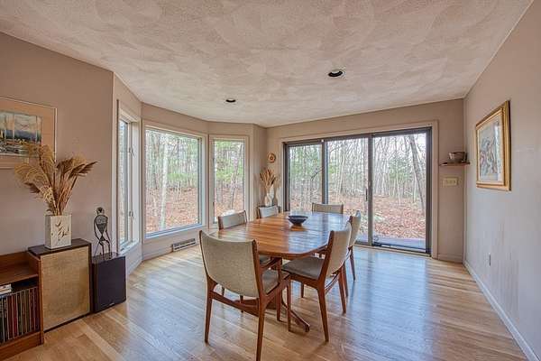 A UNIQUE home where space, light, & nature come together in harmony. This 3,045 sq ft CONTEMPORARY COLONIAL offers refined comfort in a SERENE, wooded setting w/ a 3 CAR GARAGE. A beautiful CHERRY, STAINLESS & GRANITE kitchen w/ ISLAND offers abundant storage & flows into a dining area w/ TWO WALLS OF GLASS framing peaceful views. Adjacent, is a warm & inviting SITTING AREA, complete w/ a cozy FIREPLACE. From the spacious dining room & these central living spaces, step outside onto the SPECTACULAR TIERED DECK. A VAULTED LIVING ROOM plus a GUEST/BONUS ROOM w/ NEARBY FULL BATH, complete this level. Upstairs boasts a SPACIOUS PRIMARY SUITE w/ CATHEDRAL CEILING, sitting area & ENSUITE BATH w/ SOAKING TUB & SHOWER + three bedrooms w/ wooded views. One bedroom stands out w/ its own cathedral ceiling & CHARMING WINDOW SEAT. Attention to detail & quality craftsmanship are evident. More than just a place to live, it's a place to thrive! SHOWINGS START @ OH Sat & SUN April 11th&12th, Noon-1:30.
