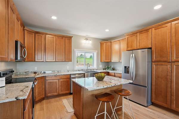 This versatile Barndominium will fit any lifestyle. A great place to raise your family, work in your shop, retire, or even work from home & enjoy the views from the 48'x8' rear covered patio. Zero Entry (no steps). Everything inside is new! Here is your chance to get out of the City. 1536 Sq Ft 3 bedroom home with additional 160 Sq Ft mechanical room. 2.85 acres. This low maintenance & energy efficient home is built to last. Step inside to 9' ceilings & a very modern & open design. The beautiful kitchen with upscale Maple cabinets, granite countertops, & a SS Farm sink will not disappoint. As if all this weren't enough check out the 105'x50' shop with 16' ceilings. Total versatility & flexibility here to customize your shop to fit your needs. This home has something for everybody! Call for a private showing today!