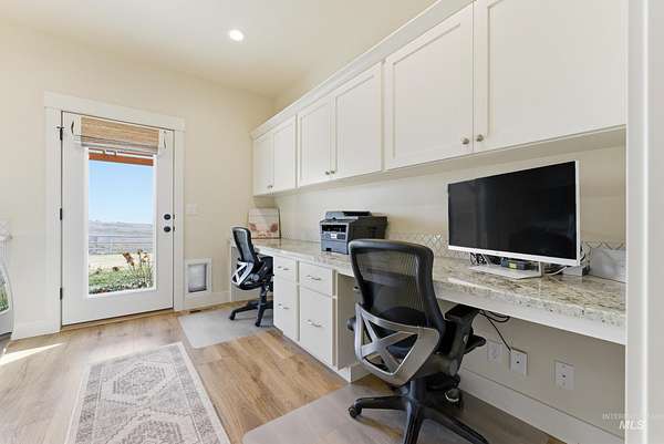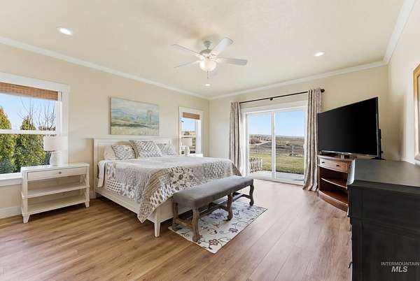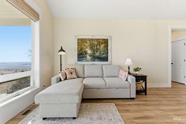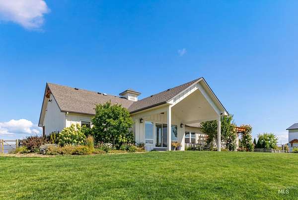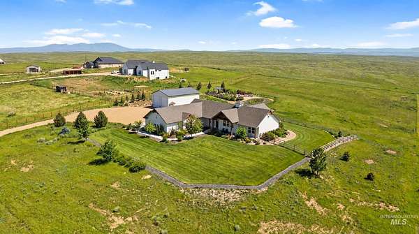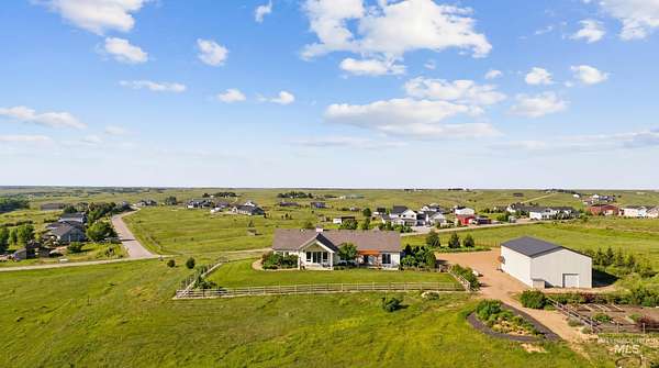 3 bedroom 2.5 bath 2352+ SQ FT on 5 beautiful acres welcome to quiet country living with the charm and grace of a custom-built homestead. Perfectly positioned on higher ground, this home offers literal 360 degrees views with sweeping mountain vistas, including the Owyhees and Bogus Basin. Enjoy peace, privacy, and wide-open space in a neighborhood designed to give flexibility for your lifestyle. The property backs directly to BLM land, creating a rare sense of openness and endless recreation right out your back door. Extensive landscaping surrounds the home, featuring mature fruit trees, thoughtfully designed garden beds, and drip irrigation throughout. The sellers had this home custom built with comfort and functionality in mind, featuring a desirable split floor plan for added privacy. A large detached shop includes two 14-foot doors plus a convenient drive-through door on the opposite end ideal for RVs, equipment, or serious hobbies. Inside, the oversized laundry room doubles as a functional office space with a built-in desk area. The kitchen also has a reverse Osmosis system.Located just 10 miles to Middleton, 11 miles to Emmett, and 11 miles to freeway access, this property offers the perfect balance of rural serenity and everyday convenience.