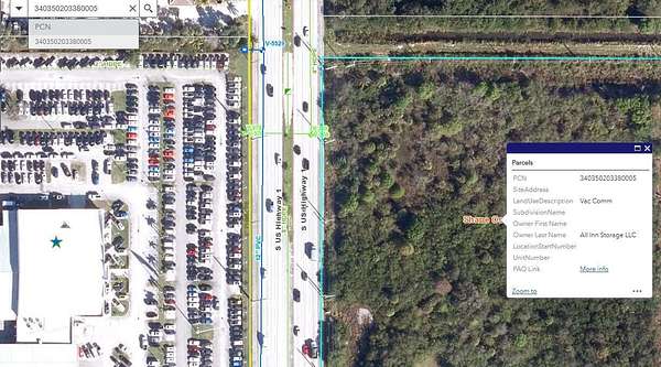 Est $14,565/moPrime US #1 commercial development site with 510 feet of road frontage. Rapidly growing location between South Fort Pierce and Port St Lucie. Located across from Arrigo Chrysler, Dodge, Jeep. Near numerous other dealerships including new Bev Smith Kia under construction. Solid residential roof top count with 7,000 with in 2 miles radius and 48,500 roof tops in 5 mile radius. Over 300,000 population in 10 mile radius of this site. 30,000 average daily traffic count in front of this property. See documents section for more details. See photos for water/sewer map. FPUA water, sewer, & gas available to site. FPL electric available to site.
