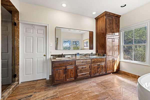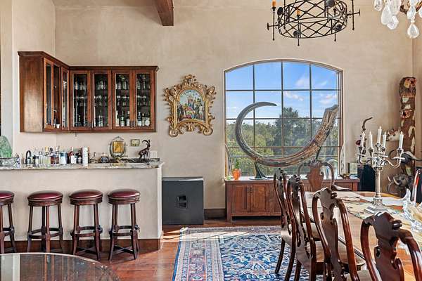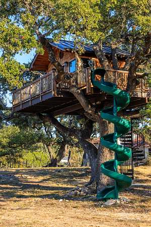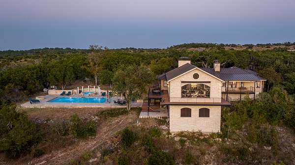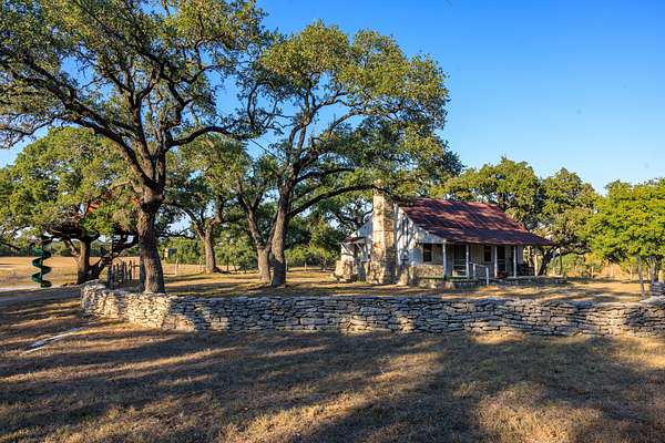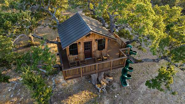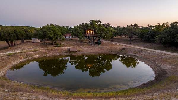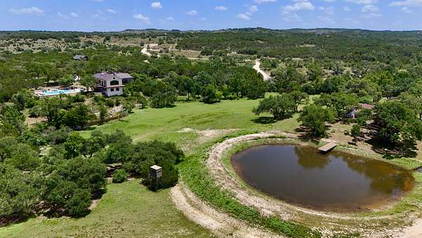 The centerpiece of Seven Falls Ranch is the beautifully updated 5-bedroom, 3-bathroom masonry home, originally built in 1994 with a major addition completed in 2018. Offering approximately 5,400 sq. ft. of livable space, the home seamlessly blends Hill Country charm with modern comfort. With a large family room equipped with a wet bar and stone fireplace, a formal sitting area, pool room with wet bar, and an office with a view, this home is set up to host family and friends. A wrap-around deck and a spacious covered porch provide ideal spaces for outdoor relaxation and entertaining. The ranch's outdoor living spaces are equally impressive, featuring a pool and spa with stunning views of the surrounding landscape. Adjacent to the pool is an outdoor fire pit and grilling area, creating the perfect setting for evening gatherings under the stars. Just beyond the home, you'll find a separate foreman's cabin with 1 bedroom and 1 bathroom, that could be remodeled for additional guest space. A standout feature of Seven Falls Ranch is the air-conditioned treehouse, nestled high in the branches of a majestic Live Oak. Complete with bunk beds and offering a spectacular view of the pond, this hideout blends comfort and adventure, making it an ideal getaway for kids and a favorite spot for family fun. In addition to the home and recreational features, the property includes various barns, sheds, and a garage, providing additional space for storage, hobbies, or equipment. One of the storage barns could easily converted into additional living quarters.