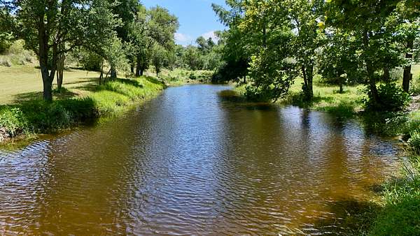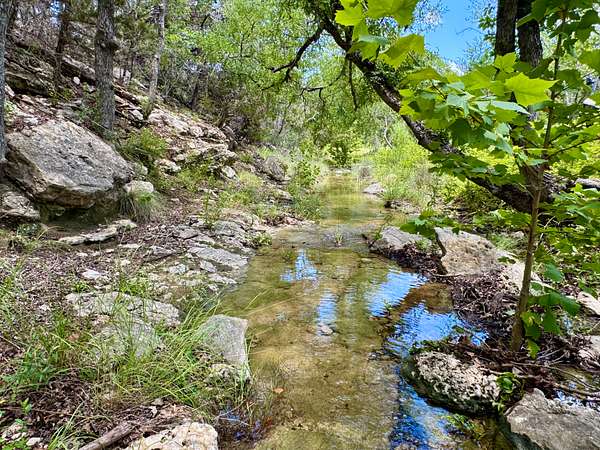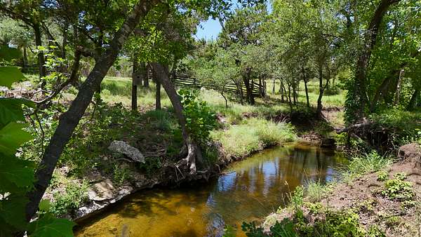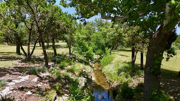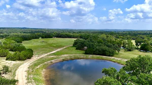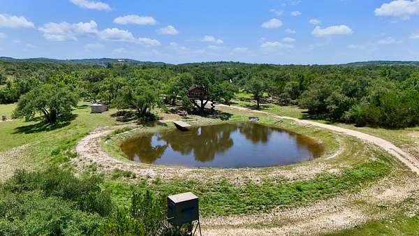 Seven Falls Ranch offers a perfect blend of natural beauty and outdoor adventure. From the main homestead, you'll be treated to elevated, panoramic views, where stunning sunsets and a refreshing breeze make every evening feel special. The land's diverse topography features multiple potential homesites, whether you're drawn to the elevated vantage points or the lush creek bottom shaded by native hardwoods. A small open pasture greets you as you enter the property, leading you deeper into this picturesque estate. At the heart of the ranch is a newly built, lined pond and a seasonal creek that winds its way across the land for over 3300 ft., creating a peaceful water feature enhanced by a series of seven waterfalls and five concrete low-water crossings to back up ample water during average rainfall years. This combination of water and land adds to the serene charm of the landscape, perfect for those who love the outdoors. Beneath the expansive Live Oak canopies and native hardwoods, the ranch is a haven for wildlife, especially Whitetail Deer and Turkeys. This property is mostly surrounded by larger ranches including the legendary Storm Ranch which aids in preserving both wildlife habitat and personal privacy. For the hunting enthusiast, the property is fully equipped with three 4x4 box blinds and nine deer/turkey feeders. Whether you're drawn to the natural beauty of the land or the abundance of wildlife, Seven Falls Ranch offers a truly exceptional outdoor experience for all.