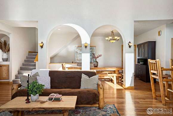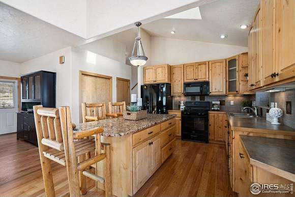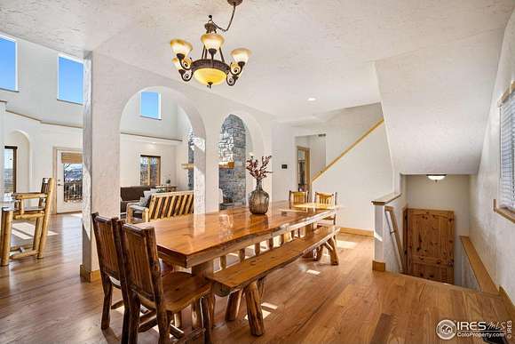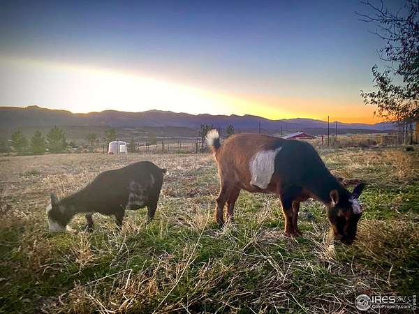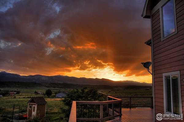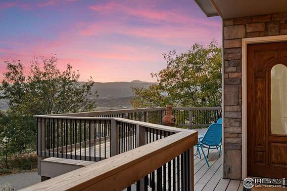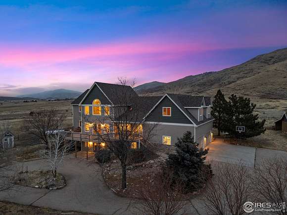 More than a house - this is a lifestyle. Perched on 4.45 acres with sweeping views of the foothills and Devil's Backbone, this 5,000+ sq ft custom home is a sanctuary for dreamers, artists, adventurers, and anyone who feels connected to nature. Every day here feels like a story worth telling. Sunsets paint the sky, and rainbows span the foothills. Great horned owls perch on the rooftop as deer wander through the yard below. From backyard picnics, Nerf battles, and holiday feasts with dozens of friends, to weddings, photo shoots, and peaceful mornings in an art studio - this property will be your backdrop for countless unforgettable memories. With panoramic views of the foothills and Devil's Backbone, you're immersed in beauty from every angle. The county-owned open space directly behind ensures your views and privacy will never be interrupted. In winter, sledding and cross-country skiing. In summer, hiking, biking, and stargazing under spacious skies.The home is designed for both comfort and gathering. A soaring great room centers on a dramatic stone fireplace. The kitchen features granite counters and knotty alder cabinetry. A main-floor primary suite provides a private retreat, while versatile lofts, bonus rooms, and a walk-out basement with Cantina-style bar create space for every need.Bring your horses, keep chickens or goats, launch model rockets, or simply relax in a hammock under the trees. Here, you don't keep up with the Joneses - you live your own story. This is more than a property. This is Colorado living at its finest - inspiring, adventurous, and unforgettable. Brand new roof and Pre-inspected for Buyer's peace of mind.