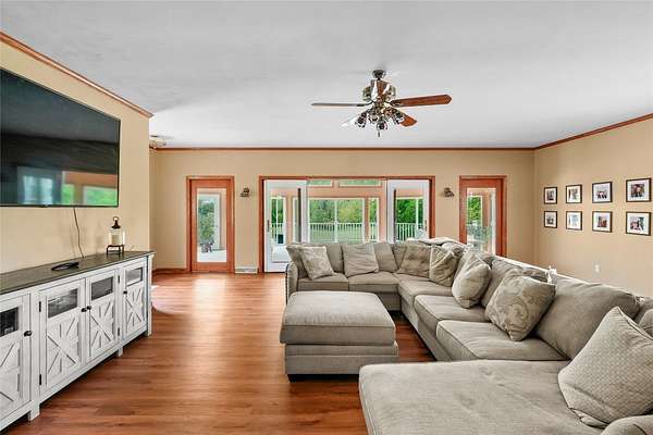 Nestled on nearly 3.5 acres in scenic Fairview, this stunning single-story home offers space, style, and serenity. The kitchen features a peninsula and dining area, with a beautiful pine vaulted ceiling flowing into the living room with fireplace. Enjoy updated flooring, a spacious primary suite with dual-vanity bath, and remodeled bedrooms and laundry. Entertain in the large family room or breathtaking great room with vaulted ceilings, walls of windows, and sliding doors to a wrap-around deck overlooking wildlife and a heated inground pool with pergola, pool house, and expansive concrete deck. A finished walk-out basement includes a 4th bedroom, game room, and access to a covered stone patio. Car enthusiasts will love the 3 detached garages offering 6 bays total, including a heated 2-car garage, a 3-car garage with electricity, and a separate garage/workshop with private driveway. A rare find combining modern updates with country charm!