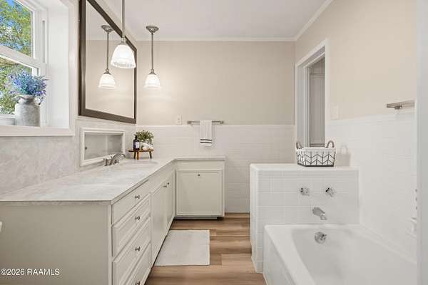 - Attic Access, Beamed Ceilings, Built-In Features, Built-Ins, Crown Molding, Dual Closets, Electric Dryer Con, Electric Stove Con, Electric Washer Con, Granite Counters, Primary Bath, Separate Shower, Walk-In Closet(s)