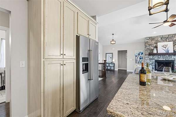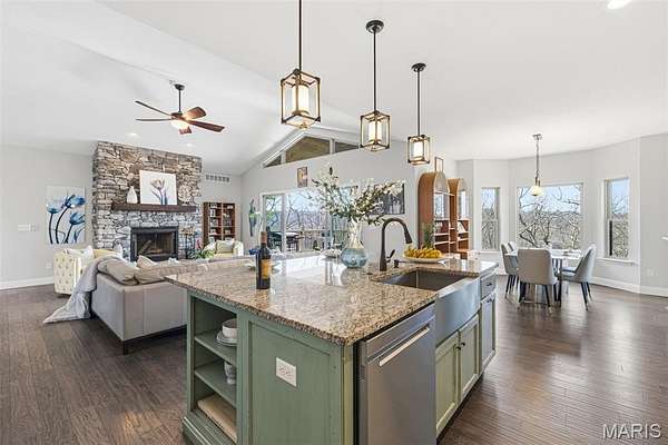 From the moment you step inside, you’ll be captivated by the open-concept design and expansive main living area, flooded with natural light. The beautifully appointed eat-in kitchen is a true showstopper, featuring granite countertops, custom cabinetry, and stainless steel appliances—perfect for both everyday living and entertaining. In the cooler months, the striking stone wood-burning fireplace creates a warm and inviting ambiance you’ll love coming home to.