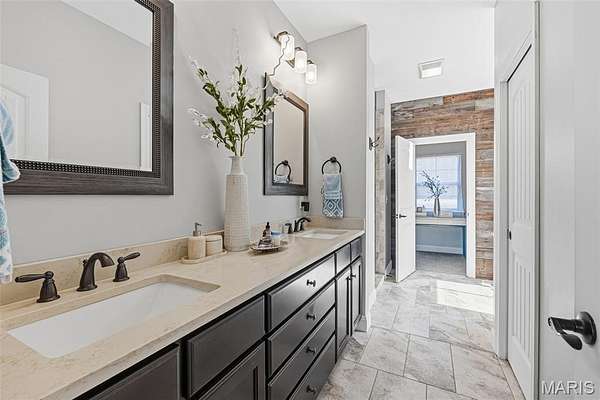 The luxurious primary suite is a retreat of its own, offering a spa-like ensuite with a custom walk-in shower featuring dual heads, a double sink vanity, and a thoughtfully designed walk-in closet.