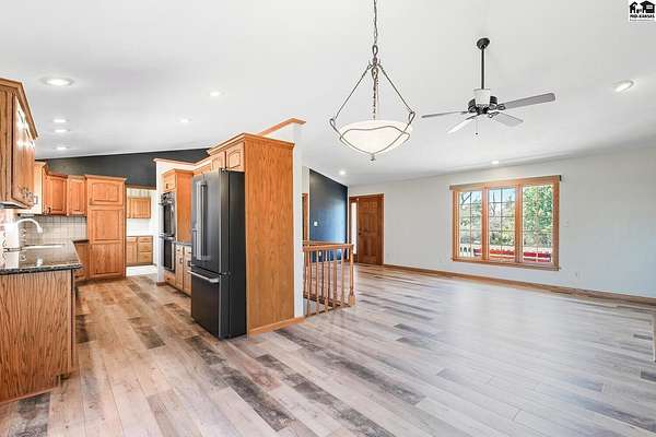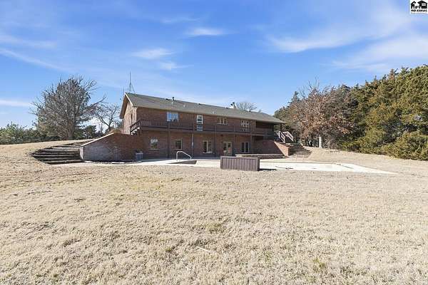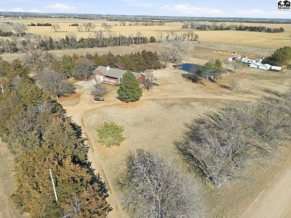 Welcome to peaceful country living on 13.6 acres! This spacious, ranch style home offers the perfect blend of comfort, functionality and wide open, Kansas views. With 4 beds, 3.5 baths, this home features an open floor plan on both the main level and in the fully finished, walk-out basement, ideal for every day living and entertaining. The main floor showcases new flooring in the living, kitchen and dining area along with fresh paint throughout the entire home giving a bright, updated feel. Downstairs, the walk out basement provides additional open living space and easy access to the outdoors. Stepping outside, enjoy everything this property has to offer. A 30X50 shop with a lean-to perfect for equipment, hobbies or extra storage. Plus acreage well suited for a hobby farm. Lastly, a charming pond to add to the peaceful setting making it easy to unwind!