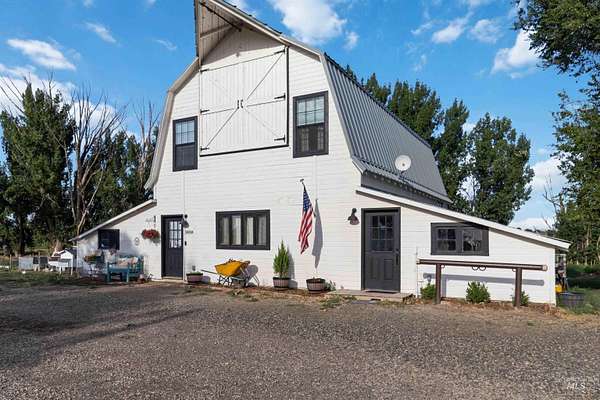 (TWO HOMES ON PROPERTY) Discover the perfect blend of comfort, charm, and functionality on this tree-lined 7.1-acre irrigated property nestled along desirable Denver Road. The spacious two-level main home features 5 bedrooms, 2 bathrooms, two generous living areas, a large walk-in pantry, and abundant storage throughout. Unique farmhouse touches give this home character and warmth, making it ideal for those who appreciate style and space. In addition to the main home, the property boasts a beautifully remodeled 1,200 sq ft barn-turned-ADU offering 1 bedroom, 2 bathrooms, an open-concept living area, custom kitchen features, lofted ceilings, two garage bays, and a second-story walkout deck with scenic views - perfect for guests, multigenerational living, or rental income. The acreage is dotted with mature trees, multiple powered outbuildings, RV hookups and endless opportunities for animals, hobbies, or homesteading. Whether you're looking for a peaceful retreat or a working property, this one has it all.