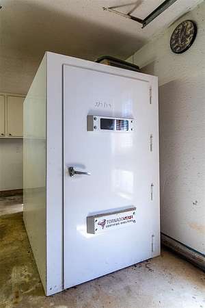 For added peace of mind, an above-ground storm shelter--professionally installed in 2019 inside the garage--offers safety and security during Oklahoma's storm season.