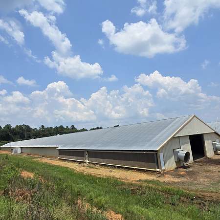 The Duc Broiler Farm is a 16 house farm located in Talladega, Alabama. The farm has 12 40x500 houses built in 2004 and 4 43x510 built in 2012. The farm grows for Koch Foods Ashland Complex raising a 6lb bird. This farm is so close to the feed mill you can see the mill from the farm. The farm has 70+/- acres, a doublewide mobile home, and a singlewide mobile home. 2024 gross annual income was $970,000.
