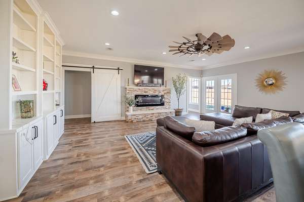 Welcome to 5808 County Road 7620 -- a truly exceptional luxury estate offering the perfect balance of refined living, modern upgrades, and peaceful country surroundings just outside of Lubbock and in Lubbock-Cooper ISD! Thoughtfully designed and meticulously maintained, this property showcases high-end finishes, expansive living spaces, and extensive updates completed within the last four years, making it completely move-in ready. Step inside to a grand living area filled with natural light, highlighted by soaring ceilings and elegant design that creates both a sophisticated and inviting atmosphere. The fully remodeled kitchen is a showstopper, featuring premium countertops, custom cabinetry, brand-new appliances, and a large island that flows seamlessly into the dining and entertaining spaces. A custom bar with an ice machine adds a unique touch, perfect for hosting. The home is equipped with a whole-home reverse osmosis (RO) water filtration system, providing clean, high-quality water throughout. The primary suite serves as a private retreat with a beautifully updated spa-like bathroom, including a custom-built walk-in shower, luxurious finishes, and a spacious closet. Upstairs, you'll find a massive open playroom or entertainment space, offering incredible flexibility for a game room, media space, or additional living area. Additional updates include all new windows upstairs, a brand-new patio door, new ceiling fans, and a brand-new electric water heater. Outside, the upgrades continue with new exterior paint, a new backyard fence, and a propane hookup ready for your outdoor grill setup--perfect for entertaining. The property also features an impressive 30x50 barn with running water, ideal for projects, storage, or livestock. With its extensive list of recent upgrades, luxurious features, and serene setting, 5808 CR 7620 offers a rare opportunity to enjoy elevated country living without sacrificing modern comfort or convenience. Schedule your private showing today and experience everything this remarkable property has to offer.