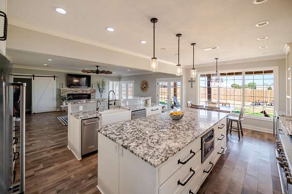 - Bar, Ceiling Fan(s), Kitchen Island, Open Floorplan, Pantry