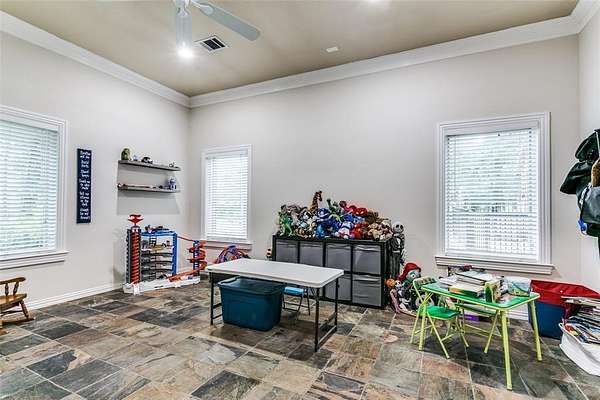 - Covered Patio/Porch, Fence, Lighting, Playground, RV/Boat Parking, Rain Gutters