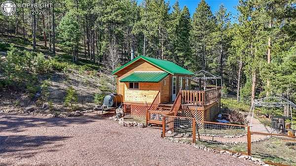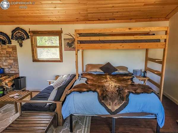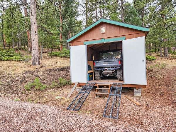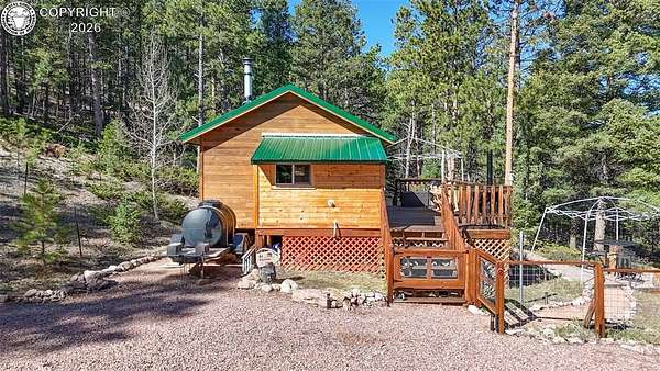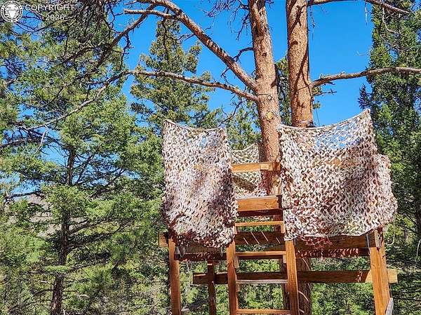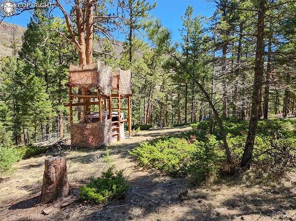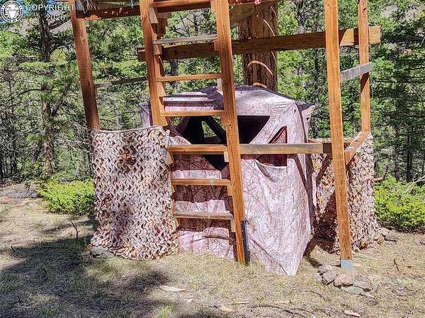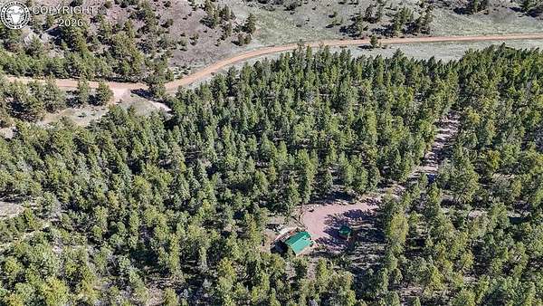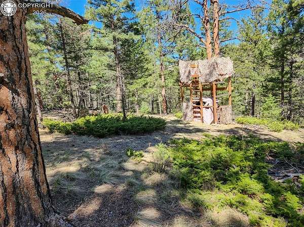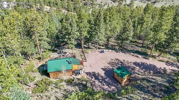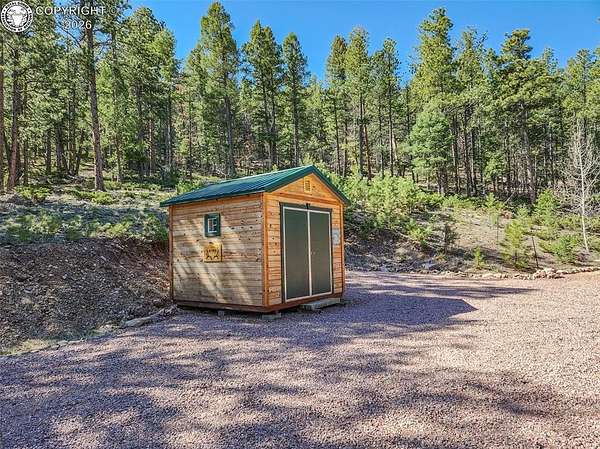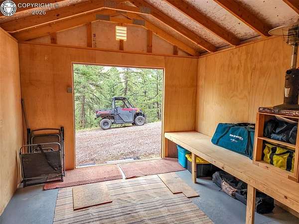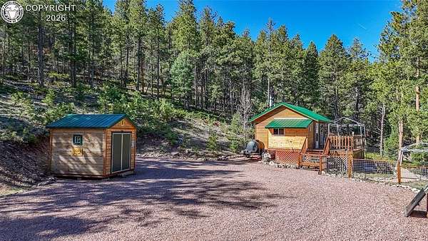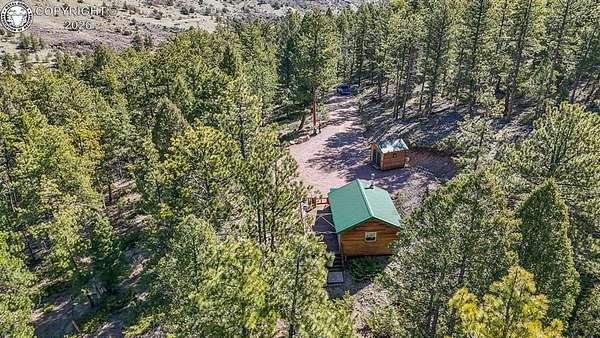 Rare opportunity to own a fully equipped, turn-key off-grid retreat on 36.4 private, forested acres in the heart of GMU 58. Tucked into the backside of the South T Bar Ranch along the Tallahassee Creek corridor - a proven turkey migration route and active deer and elk transition zone - this property is ready to enjoy from day one. The 380 sq. ft. cabin (built 2014) features a wood laminate floor, vaulted wood ceiling, wood-burning fireplace with stone surround, queen bed with twin bunk, futon, and a full kitchen with granite counters, tile backsplash, and mini-fridge. The 10x26 ft. deck overlooks a stone firepit and brick patio. A Goal Zero solar system (4x50-watt panels) powers the kitchen and bath. The bathroom includes a composting toilet, sink, and propane-heated shower. Outbuildings include a combined ATV storage and bunkhouse plus a separate workshop - both included. A 325-gallon water trailer conveys with the property. New gravel driveway installed with an estimated 5+ year lifespan. A 60 sq. ft. elevated tree stand and wood box blind are positioned on established game trails on the property. Property is typically accessible March through November. Located within South T Bar Ranch, a private gated community. HOA applies. All structures, furnishings, solar unit, Polaris UTV, and log splitter included in the list price.