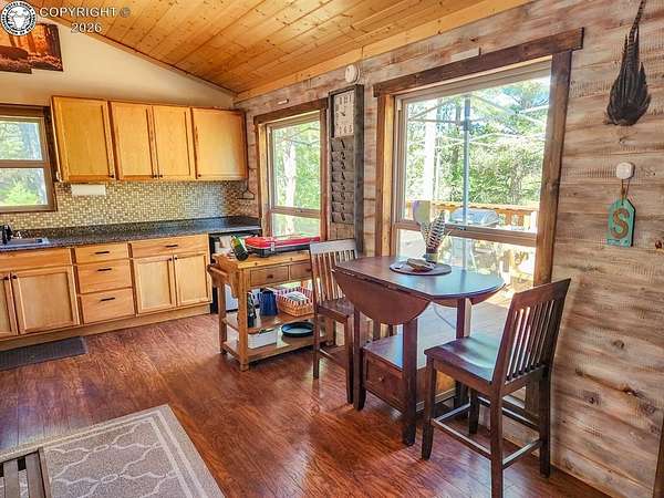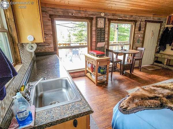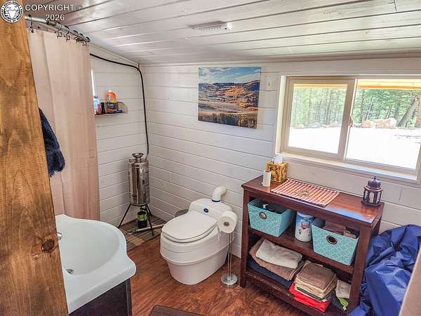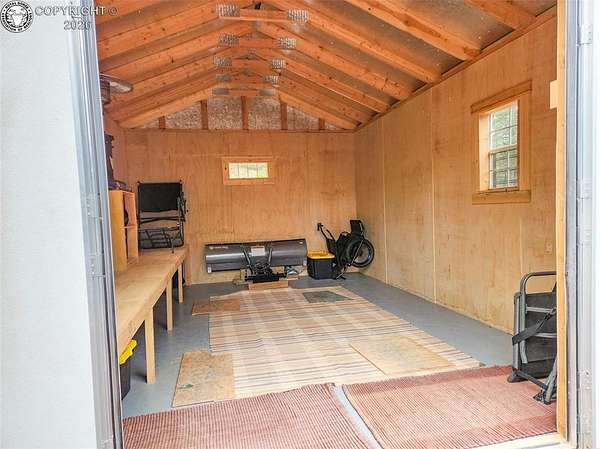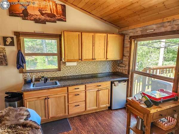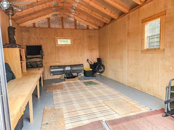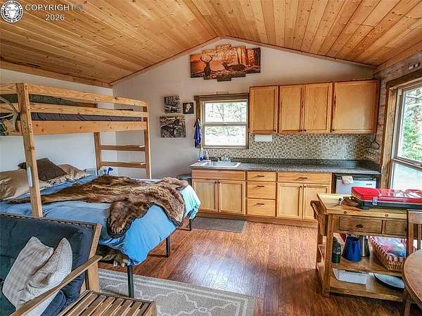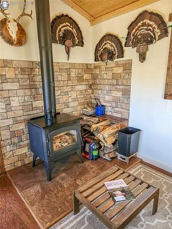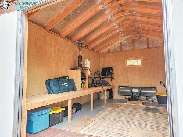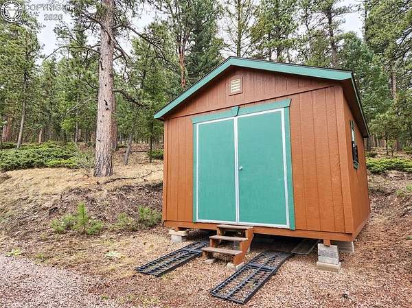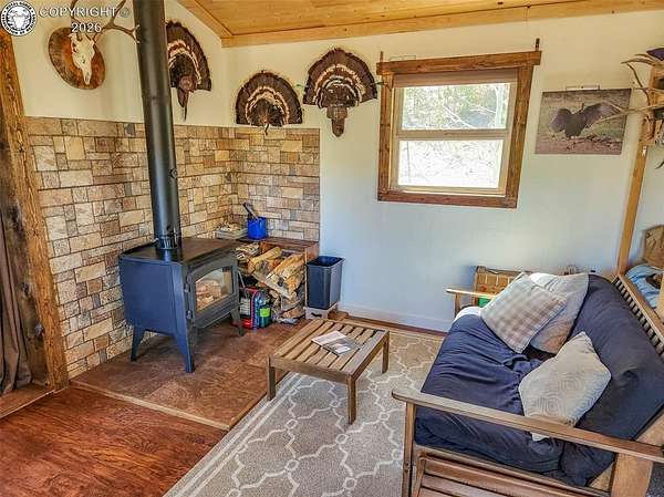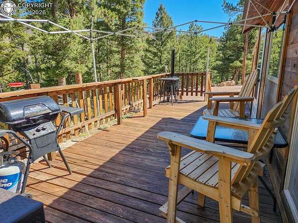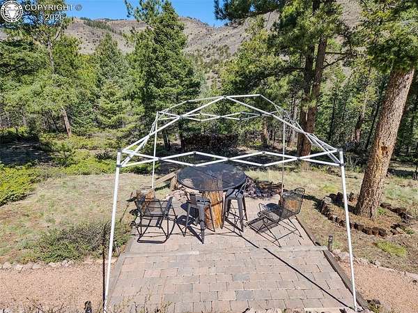 Rare opportunity to own a fully equipped, turn-key off-grid retreat on 36.4 private, forested acres in the heart of GMU 58. Tucked into the backside of the South T Bar Ranch along the Tallahassee Creek corridor - a proven turkey migration route and active deer and elk transition zone - this property is ready to enjoy from day one. The 380 sq. ft. cabin (built 2014) features a wood laminate floor, vaulted wood ceiling, wood-burning fireplace with stone surround, queen bed with twin bunk, futon, and a full kitchen with granite counters, tile backsplash, and mini-fridge. The 10x26 ft. deck overlooks a stone firepit and brick patio. A Goal Zero solar system (4x50-watt panels) powers the kitchen and bath. The bathroom includes a composting toilet, sink, and propane-heated shower. Outbuildings include a combined ATV storage and bunkhouse plus a separate workshop - both included. A 325-gallon water trailer conveys with the property. New gravel driveway installed with an estimated 5+ year lifespan. A 60 sq. ft. elevated tree stand and wood box blind are positioned on established game trails on the property. Property is typically accessible March through November. Located within South T Bar Ranch, a private gated community. HOA applies. All structures, furnishings, solar unit, Polaris UTV, and log splitter included in the list price.