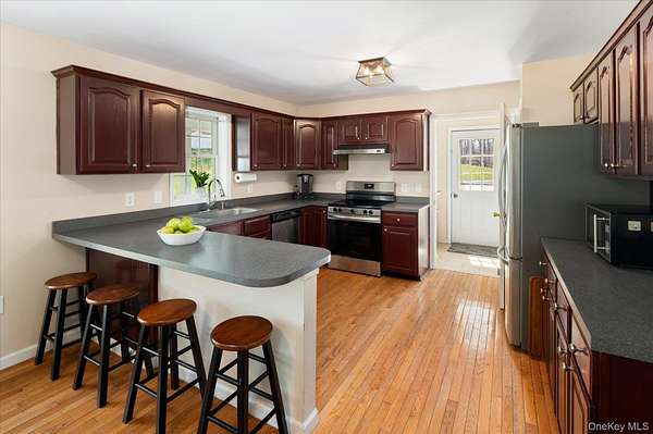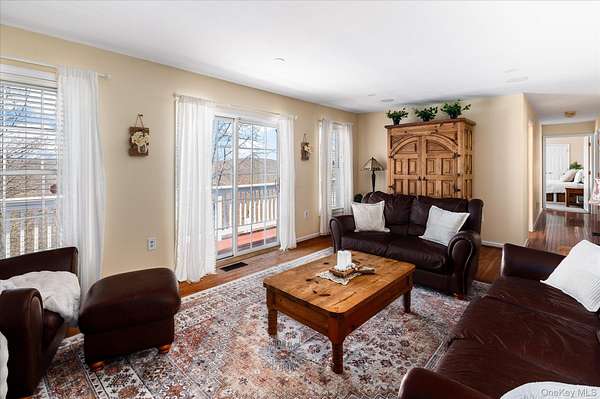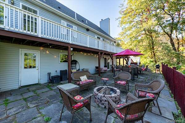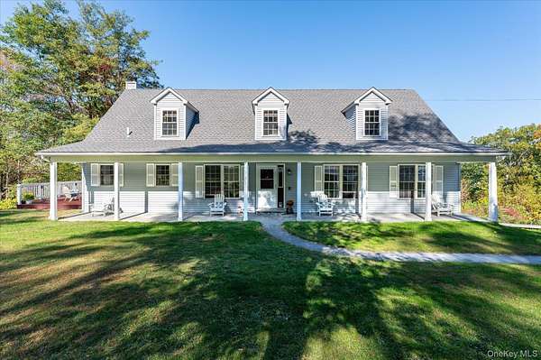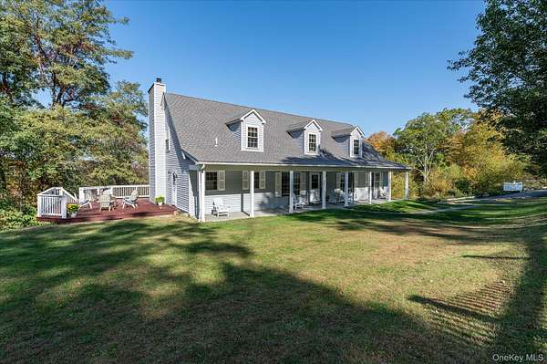 Some homes simply offer space. Others offer perspective. At 581 Barrett Hill Road, you arrive to both. There is a moment, somewhere between pulling through the gate and reaching the house, where the noise of everything else falls away. Four private acres, tucked away from everything. Nearly 3,900 square feet of finished living across three levels, none of it wasted. A 2002-built Cape Cod tucked into the landscape as though it was always meant to be here. And in every direction, the kind of views that make you understand immediately why people leave everything else behind for the Hudson Valley. The full-length covered front porch runs the width of the home and sets the pace before you even step inside. Hardwood floors carry you through the living room, dining room, and kitchen, open, warm, and connected. A fireplace anchors the living room, and sliders beside it open onto the deck, pulling the mountain views inside so naturally you stop noticing where the house ends and the landscape begins. Spanning the length of the home and wrapping to the side, the deck was built not just to look at the landscape, but to live within it. Morning coffee feels different up here. So does everything else. In the primary suite, the ridgeline sits in the distance like something that was always meant to be seen from exactly this angle, just outside the door and at the edge of the bed. The ensuite bath has a whirlpool tub and a separate shower, and the kind of quiet that makes you stay longer than you planned. A second bedroom and full bath on the same level make one-floor living feel not like a compromise, but the entire point. Upstairs, the entire floor divides into two equal worlds. A third bedroom generous enough to feel like a retreat of its own, with a walk-in closet and room to exhale. And beside it, a bonus room that resists definition. Studio, gym, creative space, the room that finally becomes whatever you have needed it to be. The finished walk-out lower level holds a recreation room, a gathering room with wet bar, a full bath, and garage access. Step outside at this level and a full-length bluestone patio opens to the backyard with a fire pit at the center and the tree canopy above, a more sheltered place to gather when the evening calls for it. Sedgewood Club, Clarence Fahnestock State Park, and the Taconic are all just minutes away, close enough to use and far enough that none of it interrupts the quiet. Outside, the property shifts with the rhythm of the day. Morning light across the open lawn, afternoons stretched across the deck, evenings gathered around the fire pit beneath the trees. The privacy does not announce itself. It simply surrounds you, quietly, until you realize you have stopped thinking about anywhere else. Some houses you tour. This one you feel.
