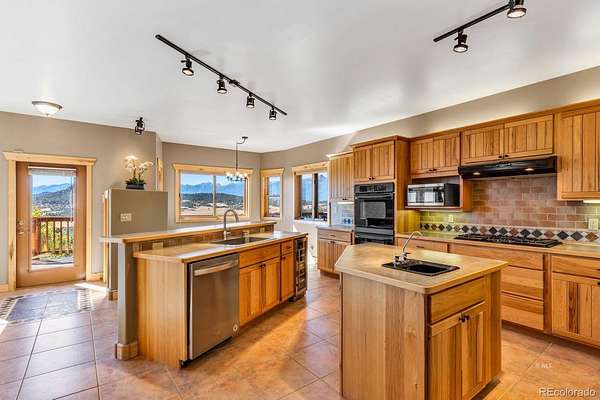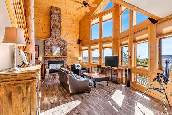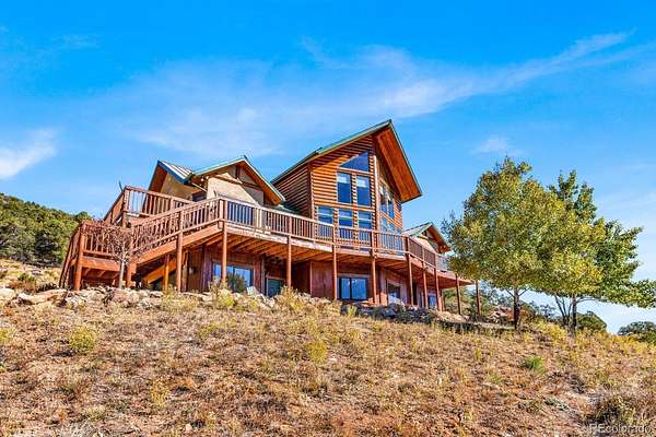 Stunning Log Home on 35 Acres with Spectacular Views! Beautifully appointed log home with 3 bedrooms (1 nonconforming), 3 baths and spacious open floor plan. Welcome home to a 2-story great room with stunning stone fireplace and wall of passive solar windows with breathtaking mountain views! Adjoining gourmet kitchen features hickory cabinets, tile backsplash, double ovens, gas cooktop, 2 pantries, 2 islands with bar top and prep sink, beverage cooler & stainless appliances. The luxurious main-floor primary bedroom offers amazing views, cozy fireplace, deck access, large custom closet, and ensuite bath with double sinks, hickory cabinets, and tile shower. Second bedroom and full bath complete the main floor. A finished walkout basement is perfect for entertaining with rec room, large custom wet bar and access to a lovely flagstone patio. The home has an attached 2-car garage and detached RV garage with 14' door plus 2 additional bays for vehicle storage and a separate 672 sf heated/cooled workshop space. The home is well maintained and move-in ready with many recent upgrades. Beckwith Mountain Ranch is a gated community with well maintained roads, good year-round access and only minutes from Westcliffe. Exceptional mountain living!
