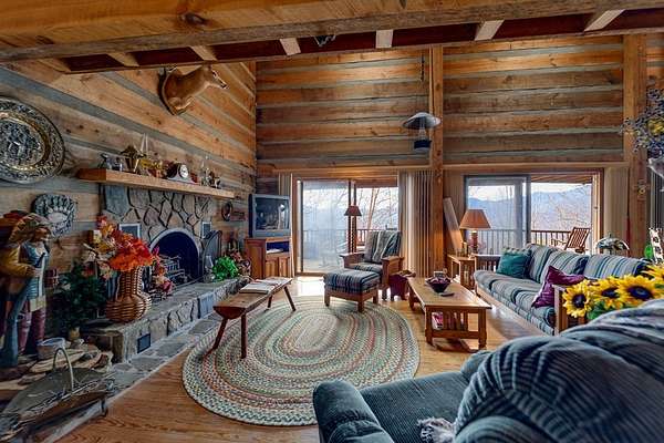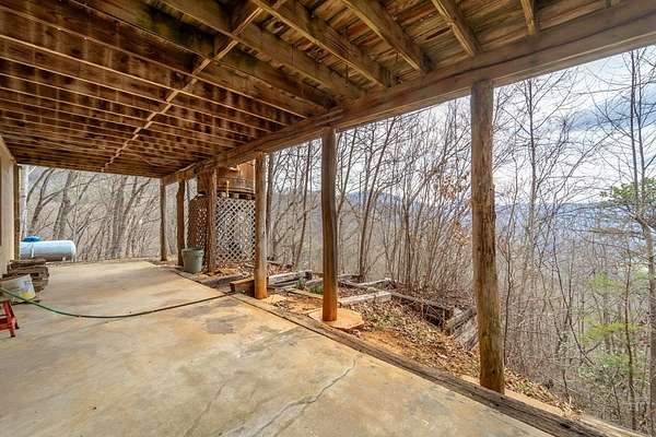Tucked away on the Highlands side of Franklin, this charming multi-level mountain cabin along Mountain Laurel Drive offers a rare mix of privacy, elevation, and long-range mountain views. Perched high on a wooded ridge, the home is perfectly positioned for a peaceful retreat or full-time residence surrounded by nature. Inside, the open-concept great room welcomes you with vaulted ceilings, a cozy fireplace, and large windows that frame the scenic landscape. The main level features a spacious kitchen, dedicated dining area, and a primary suite with full bath, ideal for single-level living. Upstairs, two loft-style rooms and an additional full bath offer flexible space for guests or family. The terrace level includes a generous family room, full bath, laundry area, and ample storage, perfect for a media room, game space, or extended stay living. Enjoy morning coffee or evening sunsets outdoors, surrounded by mature trees and mountain serenity. A detached carport adds convenience, and the location places you just a short drive to both downtown Franklin and Highlands, with access to hiking trails, waterfalls, and scenic drives nearby.