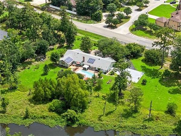 Come See this BEAUTIFUL, CHARMING and SERENE home on 2.7+ private acres backing to Doubloon Bayou with beautiful wild life, just minutes from hospitals, shopping, restaurants and I-10. ACROSS 2 SCHOOLS. This spacious property has a open concept living area that offers 4.5 updated bathrooms, 4 bedrooms with a optional of 5th bedroom 23 X 15, 2 fireplaces, no carpet, and a sauna. The updated kitchen features granite countertops, newer appliances and a sliding doors overlooking the pool. Recent upgrades include a new roof (2024), new windows, owned solar panels, updated electrical, fiber optic internet, 2 car garage, with a gated driveway. Enjoy this tranquility outdoor living with an in-ground pool, a large pavilion, and lush landscaping with producing fruit trees, fig, citrus, persimmon, kumquat, blueberries and more. Ample parking for RVs and boats makes entertaining easy. House has Generator that is installed to electrical box outside.