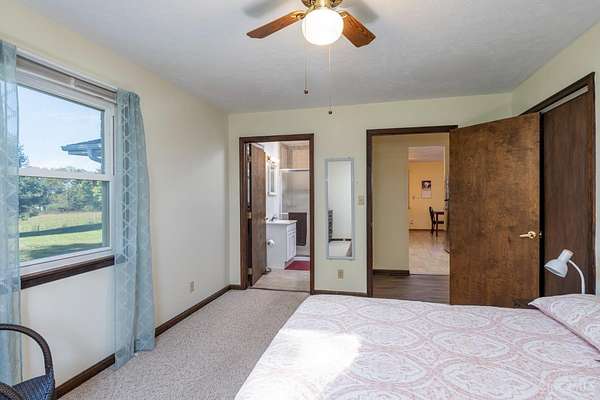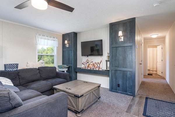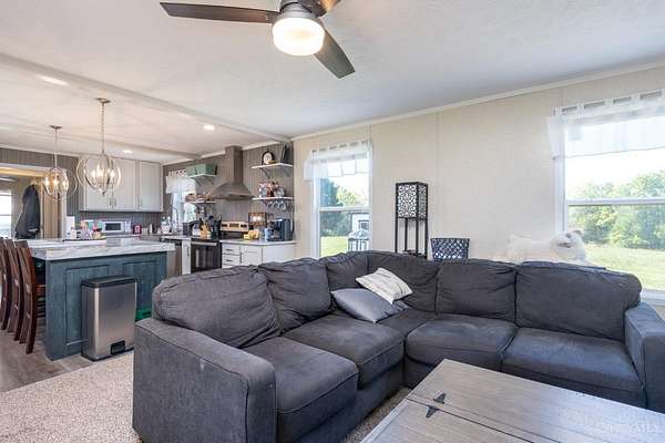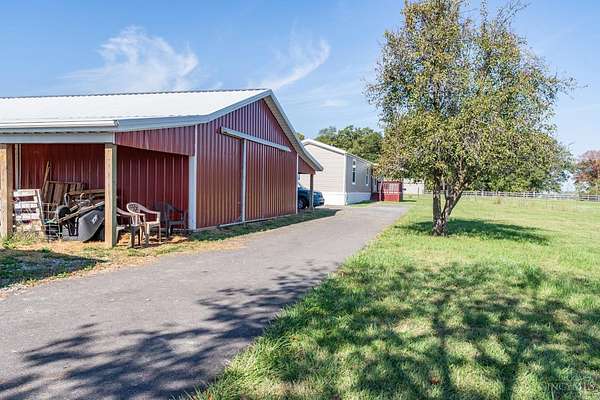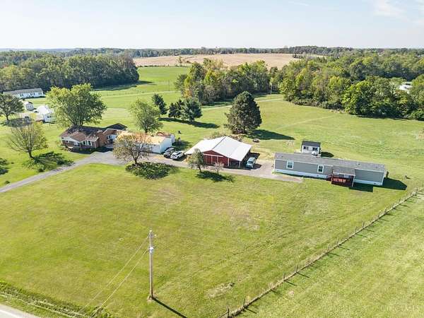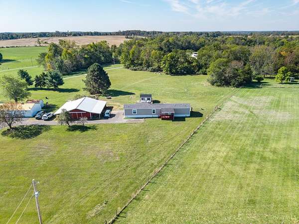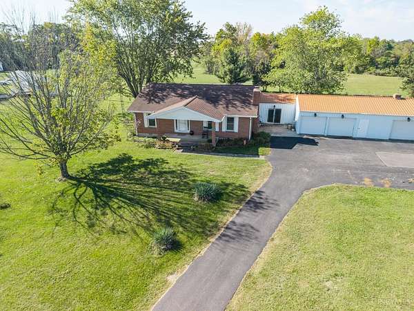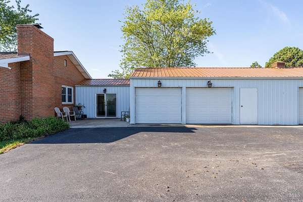 Welcome to this charming one-story home, boasting 1,874 square feet of space! It offers 3 cozy bedrooms, 2 bathrooms and a lovely, spacious kitchen. You will definitely enjoy the inviting brick fireplace with a wood-burning insert and comfortable primary bedroom suite. Nestled on a generous 7.5 acres with plenty of privacy, this property also includes a handy enclosed breezeway with a wheelchair-accessible ramp, wide hallways for easy movement, and a fantastic 4-car attached garage/shop. There is a lovely covered porch and patio, plus a 12x16 storage building for your storage needs, along with a blacktop driveway. Recently, this home has undergone some significant additions, including a brand-new HVAC system, a new small animal barn, and a Clayton mobile home was added in 2024. The mobile home features over 1200 sq. ft. of living space, with the potential opportunity for extra income or guest accommodations.