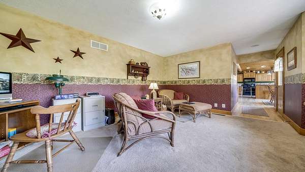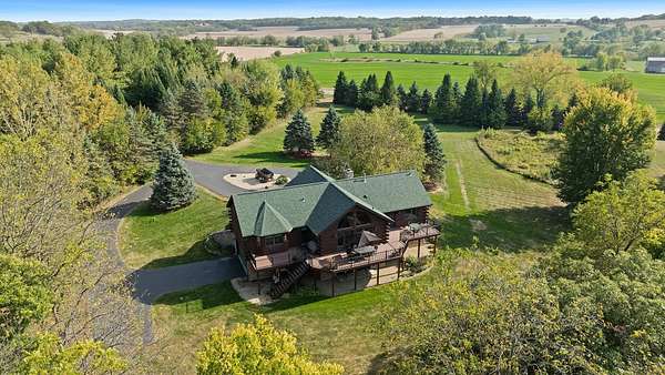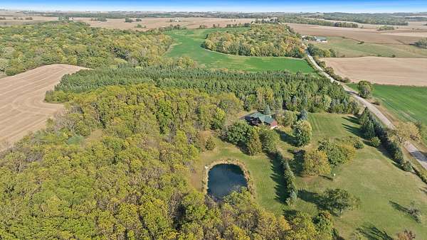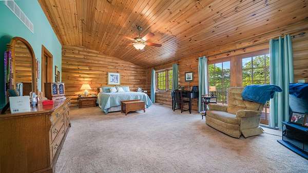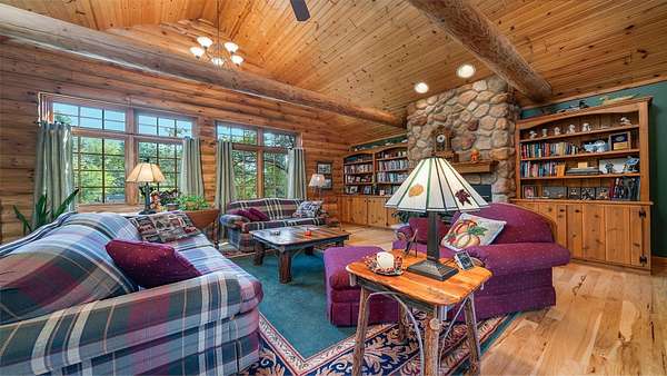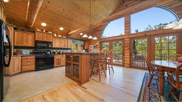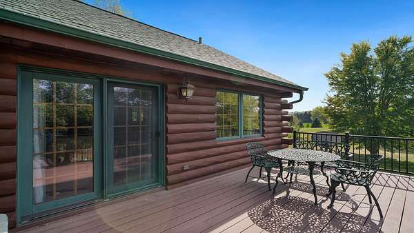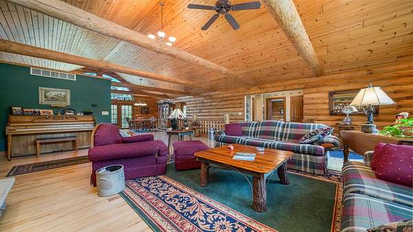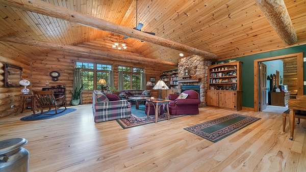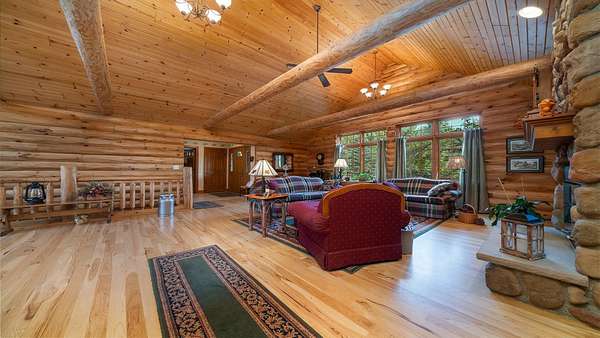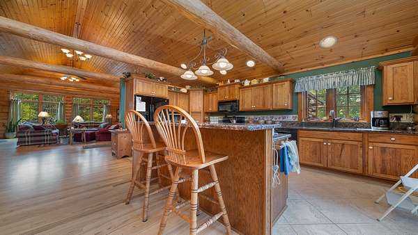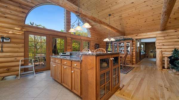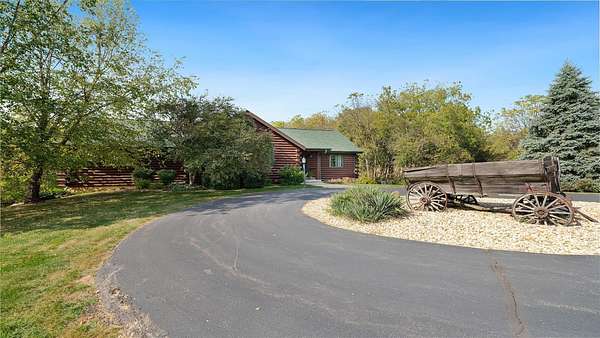 Welcome to your dream retreat! This beautifully crafted log home custom built by Brian Stevens offers 3 BR, 3 BA, and is nestled on 40 private acres, 12 of which are tillable, complete with a large pond with a pump, mature fruit trees, and a scenic creek running through the property. Step inside to soaring cathedral wood ceilings w/ exposed wood beams & charming half log interior walls. The spacious living area features a cozy gas stone fireplace flanked by custom built bookshelves. The open concept kitchen is a chef's delight w/ hickory cabinetry, granite countertops, and a large island w/ seating, perfect for entertaining. Just off the kitchen, you'll find an office space with built in window seat and easy access to the back wrap around deck. The oversized master suite is a true sanctuary, featuring vaulted ceilings, private deck access, a large walk in closet, & a luxurious attached bath with its own vaulted ceiling. The fully exposed LL adds even more living space with a generous family room, full bathroom, laundry room, and a 3rd bedroom, ideal for guests or extended family. Additional highlights: Roof (2021), Furnace, Aprilaire & A/C (2021), Security system, 2x6 construction for added efficiency, 30x40 outbuilding with concrete floor and metal roof, Attached 2 car garage. Whether you're looking for a peaceful homestead, a nature lover's paradise, or a recreational property, this one of a kind log home has it all. Enjoy the beauty of every season on this heavily wooded lot with trails, tillable land, and abundant wildlife.