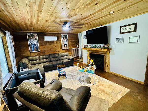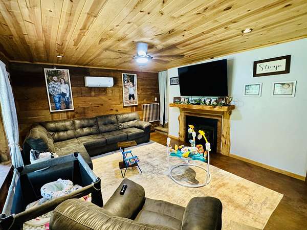 Tucked away on a little over 2 acres, this peaceful 3-bedroom, 2-bath home offers the perfect blend of rustic charm and modern comfort. The main floor features 2 bedrooms and 1 bath, while the second floor includes a private bedroom, full bath, and laundry area--ideal for guests, a primary suite, or multi-generational living.Step inside to a warm cabin feel with a beautiful gas log fireplace and large picture windows that fill the living and dining areas with natural light and frame serene views of the property. Enjoy your morning coffee overlooking your very own pond, surrounded by nature and quiet privacy.Whether you're looking for a weekend retreat or a year-round escape, this home is ready to welcome you.