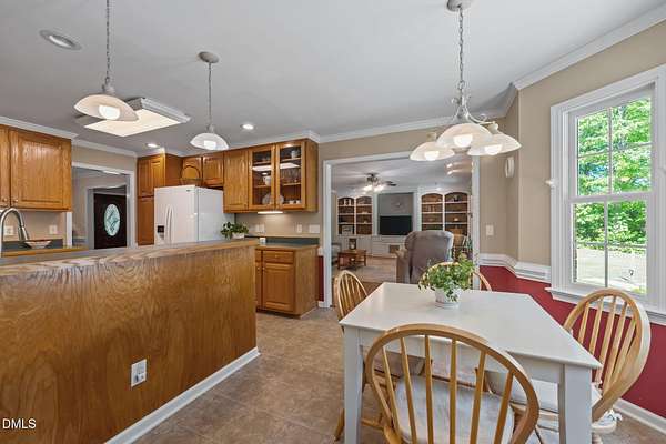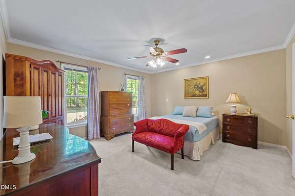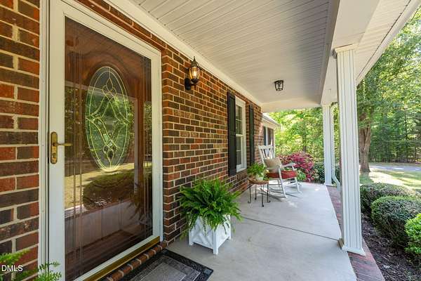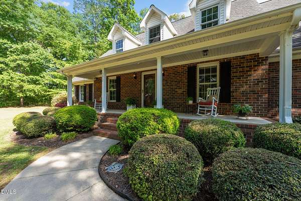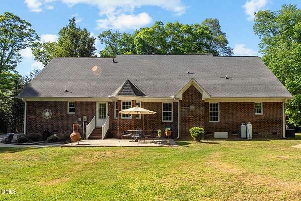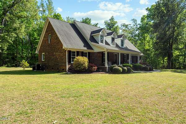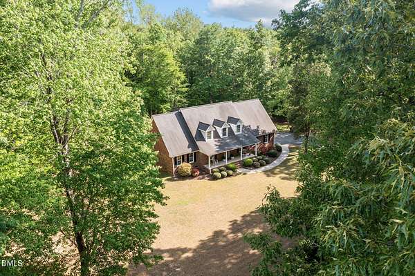 Tranquility awaits at this Cape Cod 3 bedroom brick home on 4+ acres. In a peaceful country setting this is your retreat, and yet it is convenient to the city and both the Triad and the Triangle. Spacious layout includes a sun-filled family room with built-ins and a gas fireplace. Large main floor primary suite with dual closets, en-suite bath with jetted tub and separate shower. Kitchen with breakfast nook and bay window, providing a lovely view of the back yard. Hardwoods are in most of the downstairs area. Dining room for those special events. Laundry room with sink, storage and laundry chute. Back yard patio is the perfect spot for entertaining and not another house in any direction can be seen. Flex room on the main floor is perfect for an office. Along with 2 additional bedrooms on the second floor you will find lots of storage in two huge attic rooms at each side of the house. Let your shoulders down as you relax on the rocking chair front porch. Wired out-building is ideal for the outside enthusiast.
