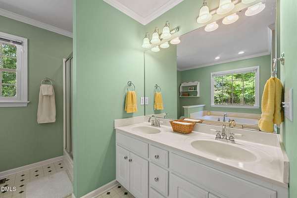 - Bathtub Only, Bathtub/Shower Combination, Bookcases, Ceiling Fan(s), Double Vanity, Separate Shower, Walk-In Closet(s)