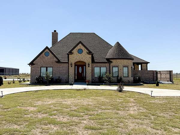 Custom Home just east of Lubbock in Roosevelt ISD! This immaculate house was custom built in 2023 and the Owner never moved in! The home still feels and smells brand new! Consisting of four bedrooms, four full bathrooms, and oversized two-car garage, this custom-built home has it all! Beautiful Primary bedroom/bathroom with large walk-in closet. Open concept, tall ceilings, tile throughout, fireplace with custom built-ins, walk-in pantry, basement, window furnishings throughout, cool, gray palate. Step outside to an amazing outdoor living space with a large in-ground custom swimming pool and outdoor kitchen with brick fence. Behind the house to the south is a 500 square feet, one-bedroom tiny house. As the property continues, you will find a 2,000 square feet metal building with large overhang. There is even a lighted basketball court! The entire 5 acres is perimeter fenced and secured with an electric gate. The Owner has planted trees throughout the property. Come see your rural dream property today!