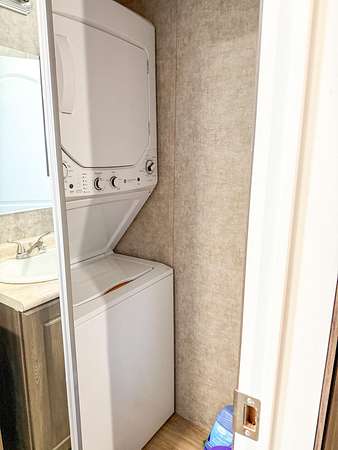 - Convection Oven, Dishwasher, Disposal, Exhaust Fan, Free-Standing Range, Gas Oven, Gas Range, Microwave, Range Hood, Refrigerator, Stainless Steel Appliance(s), Washer/Dryer Stacked