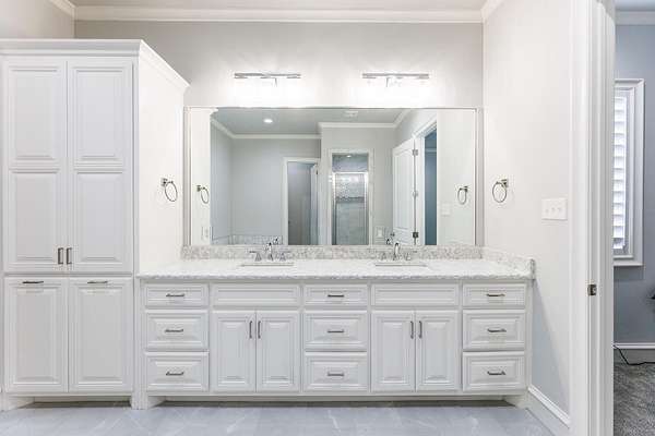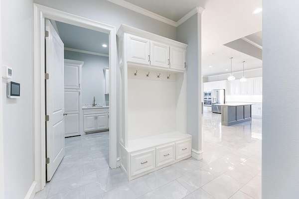 - Bookcases, Breakfast Bar, Built-In Features, Ceiling Fan(s), Crown Molding, Double Vanity, Entrance Foyer, Granite Counters, High Ceilings, His and Hers Closets, In-Law Floorplan, Kitchen Island, Open Floorplan, Pantry, Quartz Counters, Recessed Lighting, Smart Thermostat, Sound System, Vaulted Ceiling(s), Walk-In Closet(s), Wired For Data, Wired For Sound