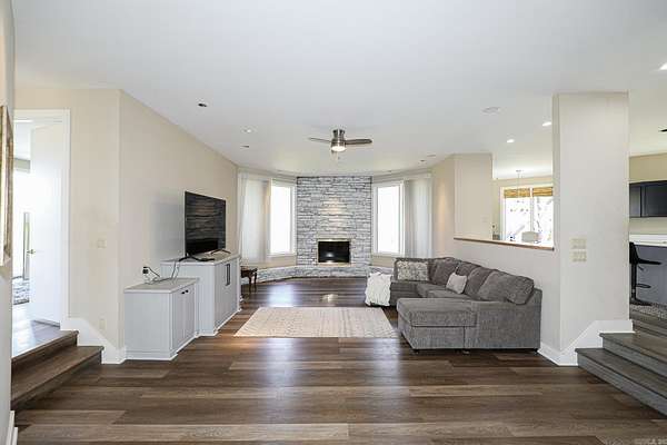 Luxury living in Benton! Over 4 Acres! Custom built home with no expense spared! This Grand home is 5160 sqft is a tri level with grand sunny spiral staircase with a vista view. 4 Bed. 3 Bath. Enormous gameroom with double French doors. This home has updated some bathrooms, kitchen, laundry, fixtures. New hardwood laminate throughout!! Great kitchen with new built ins and a sunny breakfast room. Formal dining, sunroom, office and great room with massive stone fireplace. 2 stone fireplaces and a 20 ft stone wall in the entry. Classic entrance and street appeal! New heating and air units. Pool with rock waterfall and stone surround. Gated!