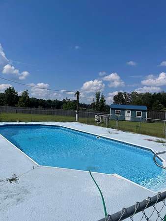 Est $1,057/moThis property offers so much! Fenced back yard, in-ground pool, with fence around pool. Nice home with large covered and screened porch as well as step up to nice covered and screened porch. Walk into a large open kitchen/family room and huge laundry area and storage. 3 Large bedroom and 2 baths. Master bath complete with soaking tub, shower and large walk-in closet. Seller willing to give a 3K flooring allowance allowing buyer to pick flooring of choice.