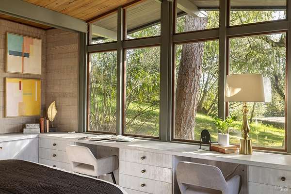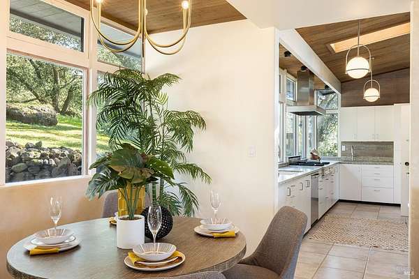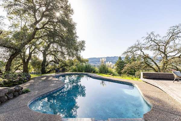 Gracefully oriented on 33 + acres in the heart of the breathtaking Bennett Valley, this mid-century contemporary gem was masterfully designed in the 60's and has recently undergone a refreshing transformation under the guidance of award-winning architect, Robert Zinkhan. The dramatic living room boasts soaring open beam ceilings, walls of glass that invite the outside in, a cozy fireplace, and elegant French glass doors that open to a picturesque terrace perfect for dining al fresco. The kitchen features state-of-the-art stainless-steel appliances, granite countertops and offers serene views of mature trees and landscaped gardens through its expansive glass walls. The family room is adorned with a whimsical round window, open beam ceiling, a large dual sided fireplace shared with the media room, and expansive sliding doors that beckon you out to enjoy the tranquil setting and pristine swimming pool. This home features four bedrooms, including two expansive primary suites. One of these luxurious primary bedrooms is perched in a separate pavilion, just a few steps from the main home. There's a stout 2,000 sqft+/- 4 stall horse barn with living quarters above which are quite charming. This secluded property, nestled at the end of a quiet country lane, offers unparalleled privacy! The majestic oak trees and sweeping valley views of distant vineyards and Jess Jackson's 1,100 acre Jackson park truly awe-inspiring. Other features of the property: caretaker cottage, engineered outdoor arena, separate 3 car garage & separate 3 car carport. There is an additional parcel for those who wish to create a family compound or to sell off a portion.