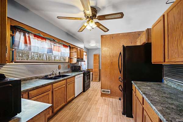 - Ceiling Fan(s), Countertops-Laminate, Deck Open, Dishwasher, Garage Door Opener, Range-Gas, Refrigerator, Tub/Shower Combination, Water Heater Electric, Water Softener-Owned