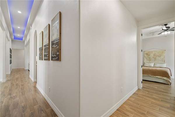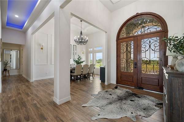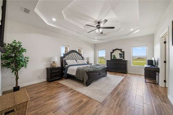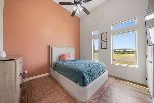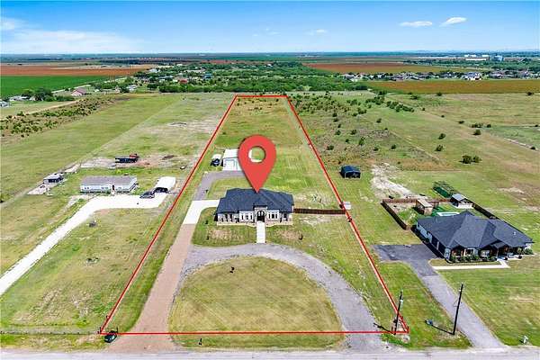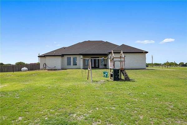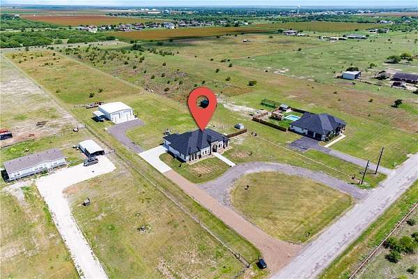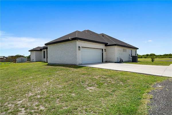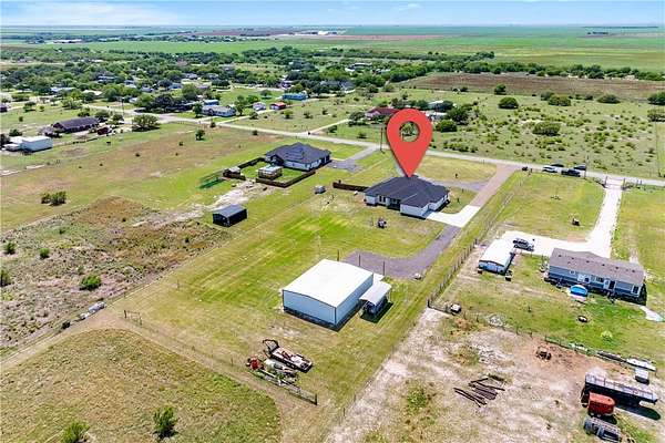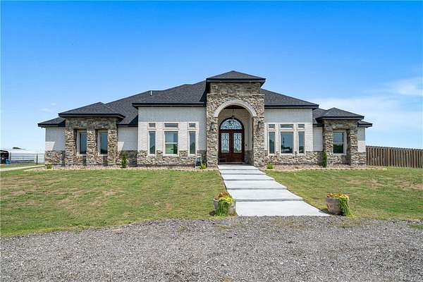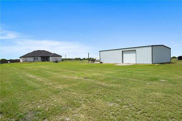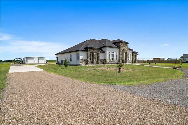 Escape to modern country living in Odem, TX! This pristine 2023 custom build on 5.48 acres features 4 bedrooms, 3.5 baths, and a custom dog wash room- for all your furry friends! Inside, you'll love the soaring ceilings, woodlook tile, and open-concept design. The chef-inspired kitchen offers quartz countertops, custom cabinetry, a spacious hidden pantry, and available gas connections. Relax in the expansive primary suite with a private bath and walk-in closet, plus a guest-ready bedroom with its own ensuite! Outside, a 50x40 ft metal building and endless open space complete the package. Select furnishings are negotiable. Luxury, space, and Texas sunsets - don't miss it. Schedule your private tour today!