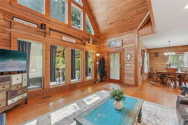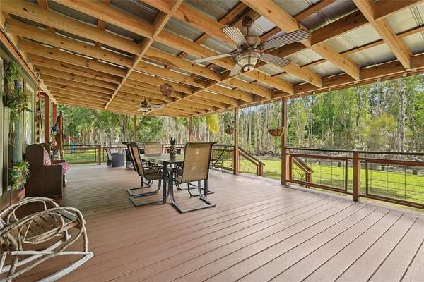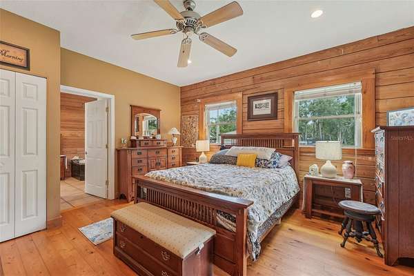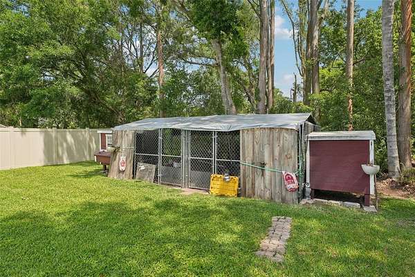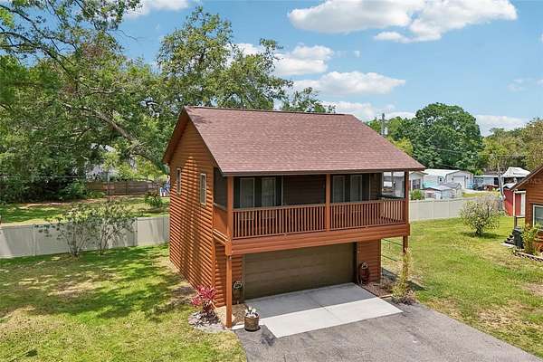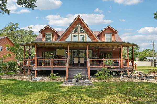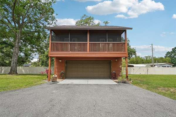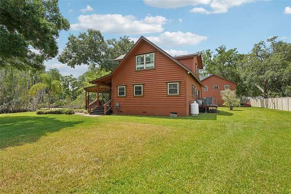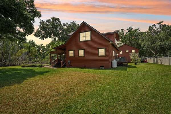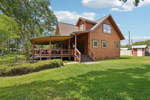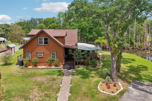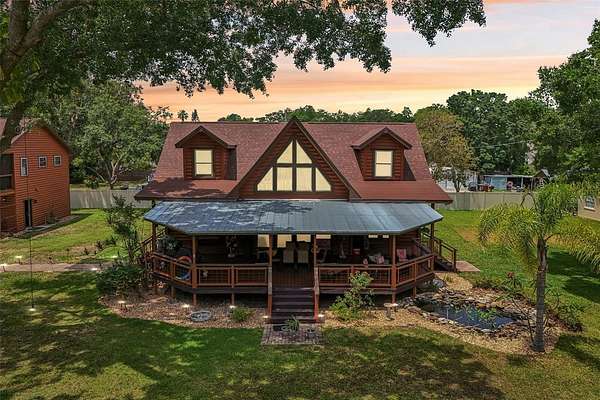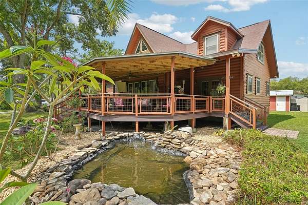 Under contract-accepting backup offers. Perfect & rare home for those who want it all . . . Located in the suburbs with urban conveniences, & a rural feel. This beautiful log cabin home is built on just under 2.5 acres of pristine property and includes a detached garage with apartment! 2022 UPDATES ~ NEW ROOF ON BOTH THE MAIN HOUSE & ACCESSORY DWELLING UNIT along with a NEW LENNOX A/C for main house! Zoned for STEINBREINNER HIGH SCHOOL! A fabulous home to raise a family located on a dead-end street featuring an oversized, covered front porch overlooking the pond and beautiful private setting. Landscaped nicely with a deep driveway. Beautiful main home with 3 bedrooms, 2-1/2 baths & loft. Large entertaining space with volume ceilings. Beautiful upgraded & updated kitchen with upscale GRANITE countertops, custom cabinetry, STAINLESS STEEL appliances to include a propane gas cooktop, & French door refrigerator. Decorative & functional island as well that is perfect for extra seating space or serving. First floor Master Suite with private French doors to front porch. Nicely equipped en-suite with an oversized jetted tub, separate shower stall with upgraded shower system, dual sink vanity & water closet. 2 super large secondary bedrooms upstairs both with custom walk-in closets & 2 storage areas, perfect for toys, etc. Large loft area that can be used as a play area, office space, library, arts & craft area, homework stations & more! 2-car garage with work space & full in-law/guest suite with a bedroom, full bath, kitchen, dinette, living area & front porch! This accessory dwelling unit would make a nice rental unit as well. Just behind the home is a fabulous LARGE workshop with an attached 2-car garage & 2-car carport. No HOA or CDD's! Great place for a home based business or to work from home. Beautiful setting with a freshly updated koi pond & a large firepit that can be enjoyed on those cooler evenings. Plenty of room to grow your own fruits & vegetables. You can also enjoy fresh eggs each morning with dual chicken coups that house some beautiful chickens who will provide the eggs which can convey with the home. In addition to fresh eggs, this property also provides fresh water fish you can catch in your own pond! As an added bonus, this home has deeded access to a private ski size lake as well! Close to everything . . . airport, shopping, banks, downtown, International Mall, beaches & much more!!! This is a one of a kind opportunity . . . call today for your private showing!