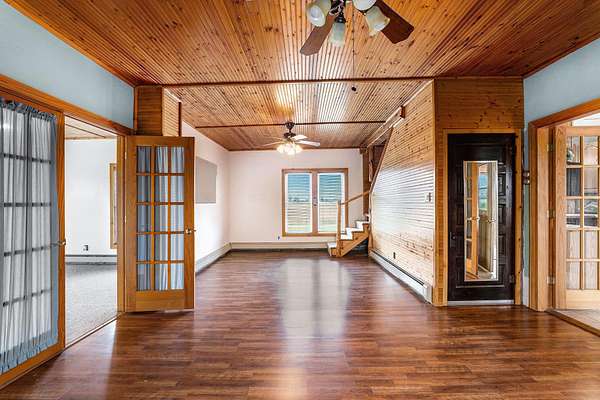 Take a look at this 4 bedroom, 2 bath home situated on just over 4 acres.. The upstairs has been completely redone including the addition of the 2nd bathroom. The main floor has a large kitchen and living room with french doors into a large room that could be a family room, main floor bedroom or office with its own entrance, great for a home business. There is also a large main floor bathroom with a big jacuzzi tub and main floor laundry. An enclosed back porch for year around use. There is a 30 X 60 pole barn with 3 garage stalls and plenty of room for a workshop and storage. There is a large pond at the south end of the property that could once again be made into a feature. There is also a great garden area and shed for all your gardening tools. . Call today for a private tour.