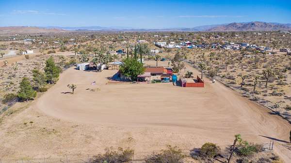 Desert Oasis with 5 Acres, Paid Solar & Equestrian Potential! If you're looking for a horse property with lots of flat usable land & incredible potential or a wonderful desert home surrounded by wide-open space and breathtaking mountain views, look no further! This wonderful single-story desert oasis sits on a sprawling 5-acre lot and offers fully paid SOLAR power, a BONUS ROOM, and countless upgrades inside and out. Step inside to a warm and welcoming living room centered around a wood-burning stove, perfect for cozy desert evenings. The space opens seamlessly to a spacious chef's kitchen, featuring abundant cabinetry and counter space, double ovens, a sleek range top, custom tile backsplash, modern pendant lighting, and a dishwasher for everyday convenience. Just off the kitchen sits a well-appointed laundry room with additional storage cabinetry. A versatile bonus room connects to the carport, offering the ideal setup for a mudroom, creative studio, home gym, or office - the possibilities are endless. The primary suite features a spacious walk-in closet with vanity area and an en-suite bath with dual sinks and an updated shower. The guest bedroom is generously sized, ideal for family or visitors. Step outside and discover endless possibilities on this expansive, flat and usable 5-acre lot - ideal for horses, recreation, or future expansion. There's ample space to design your dream equestrian setup, with room for a large arena, round pen, barn, corrals, and more. The property also features a fenced area ready for an above-ground pool and a patio perfect for soaking up the sun or watching the kids play. After a long day, unwind in the spa beneath the starry desert sky, relax on the patio, or entertain guests while taking in the tranquil desert landscape and sweeping mountain views. Additional highlights include: - Fully owned solar system for energy efficiency - New mini-split system and swamp cooler - very economical - Newer carpet with extra padding and newer subfloor in kitchen - Freshly painted interior - 400 sq. ft. ''Man Cave'' / workshop - Two metal containers with roll-up doors used as horse shelters, adjoining an 18x20 covered shelter (ideal for box stalls) - Dog run and so much more. Buyer to verify and perform their own due diligence regarding all aspects of the property, including but not limited to permits, usage, zoning, and square footage. Agent and/or seller make no guarantees regarding the information provided