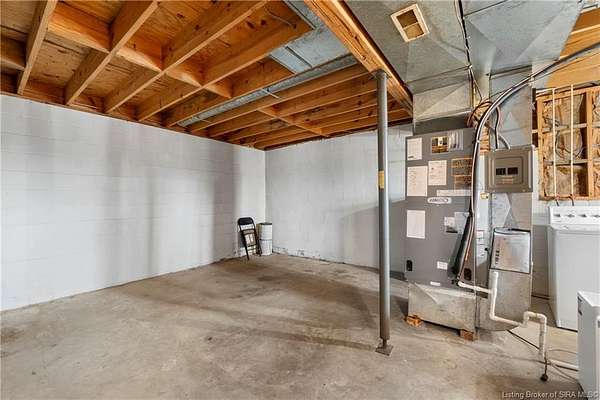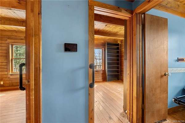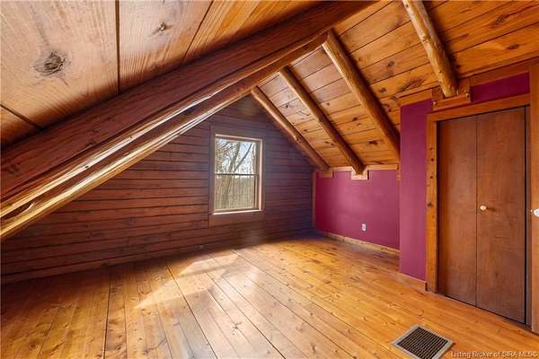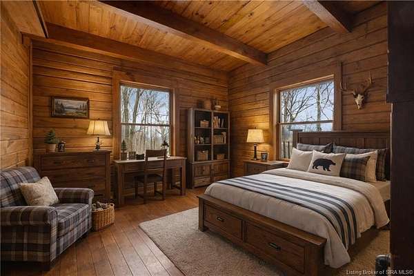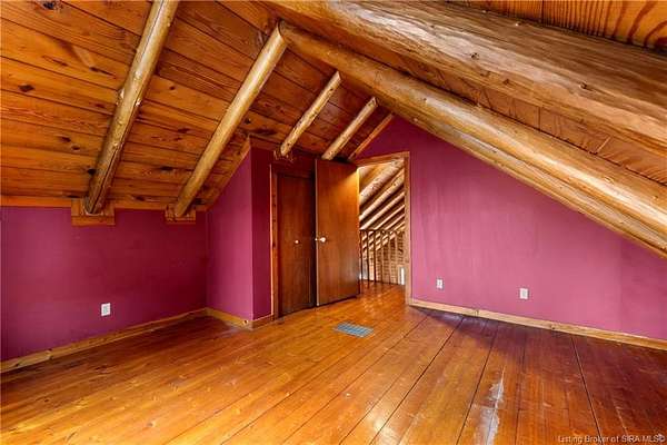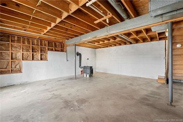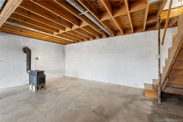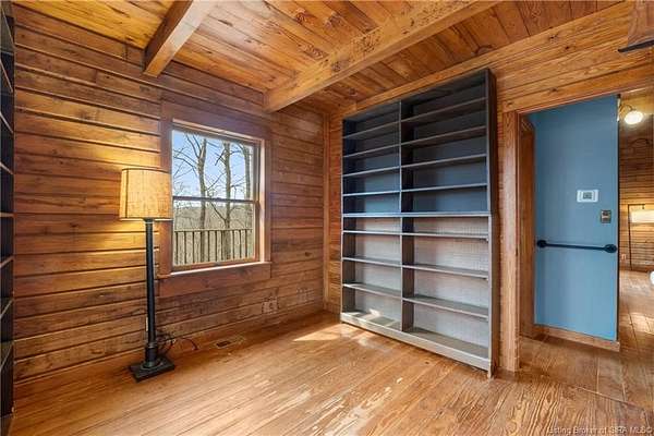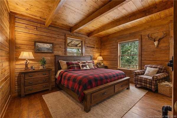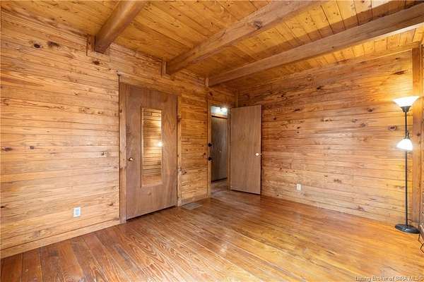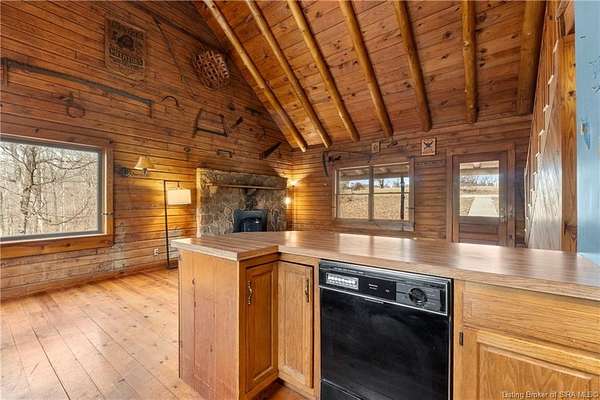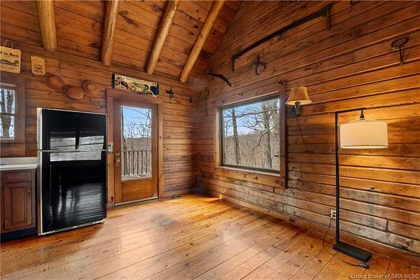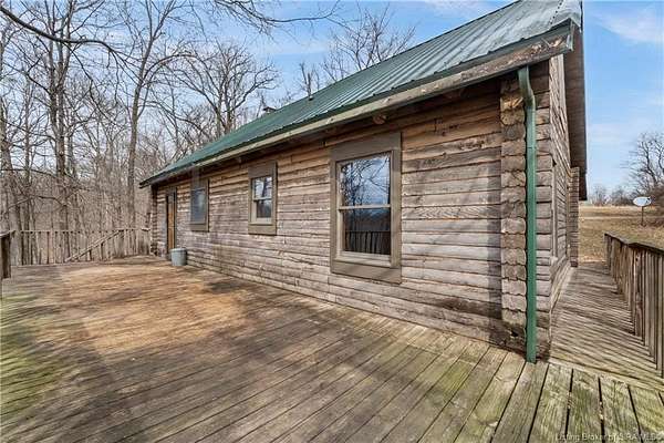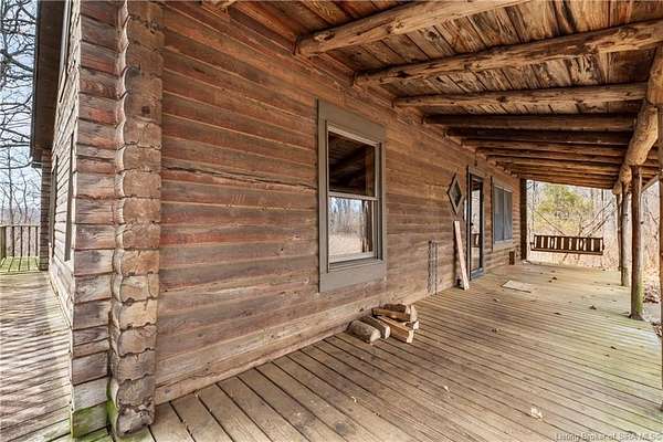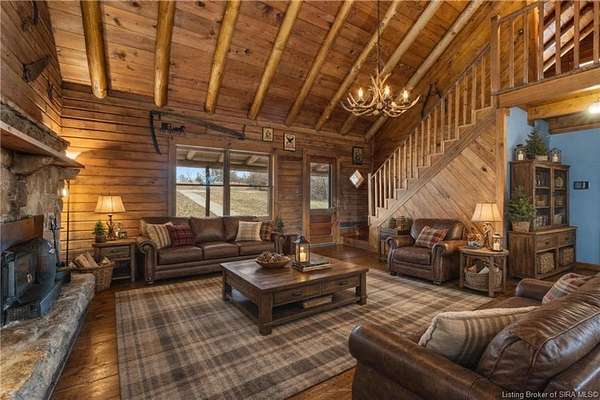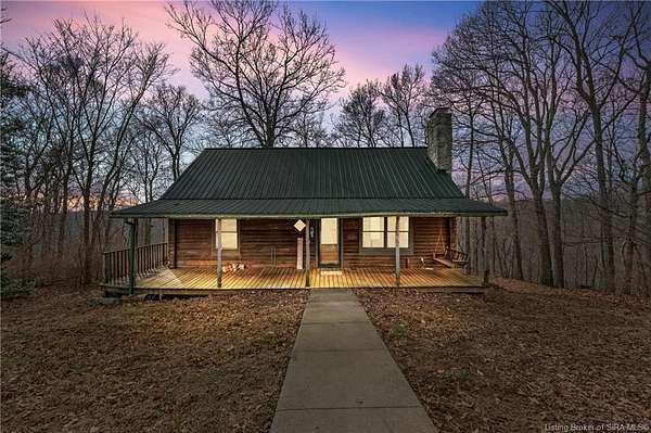 Escape to the peace and privacy of this secluded Amish-built log cabin situated on 12.47 beautiful acres in Floyd County. Offering 3 bedrooms and 2 full bathrooms, this property presents a unique opportunity to live comfortably while building your dream home, then use the cabin as an income producing investment or guest retreat. Inside you'll love the vaulted ceilings and open concept living room and kitchen, highlighted by a stunning stone fireplace that creates a warm, rustic charm. Two bedrooms and a full bathroom are located on the main level, while the third bedroom is tucked away upstairs for added privacy. The full unfinished walkout basement provides excellent potential for additional living space or storage. Enjoy peaceful mornings on the covered front porch surrounded by nature. Kitchen appliances, washer and dryer and deep freezer are included. Property is being sold "As Is".