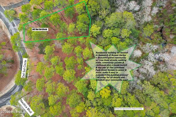 From Sunset Harbor Road make a left into the community on Nautical Blvd, follow approximately 1.5 miles to Del Sol Circle on the right, turn onto Del Sol, lot is on the right , 588 Del Sol Circle is the closest physical address lot is next to home approximately 45-50 from it