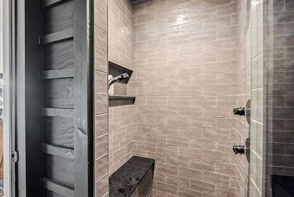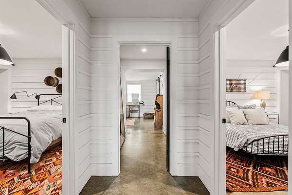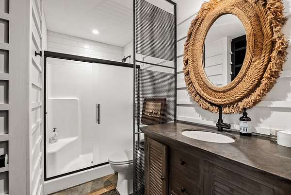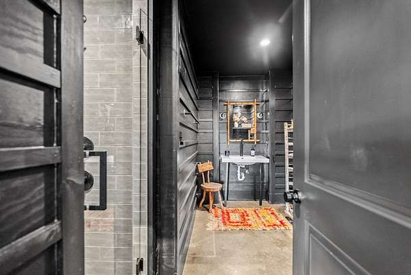Attached 600 sqft bunkhouse with full bath, kitchenette, and lockers